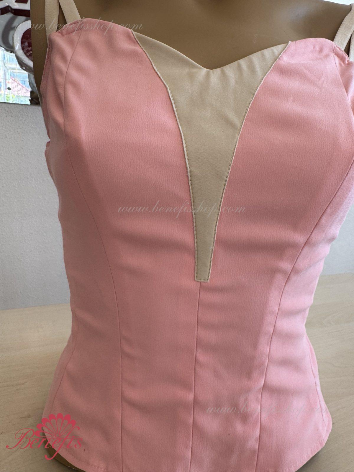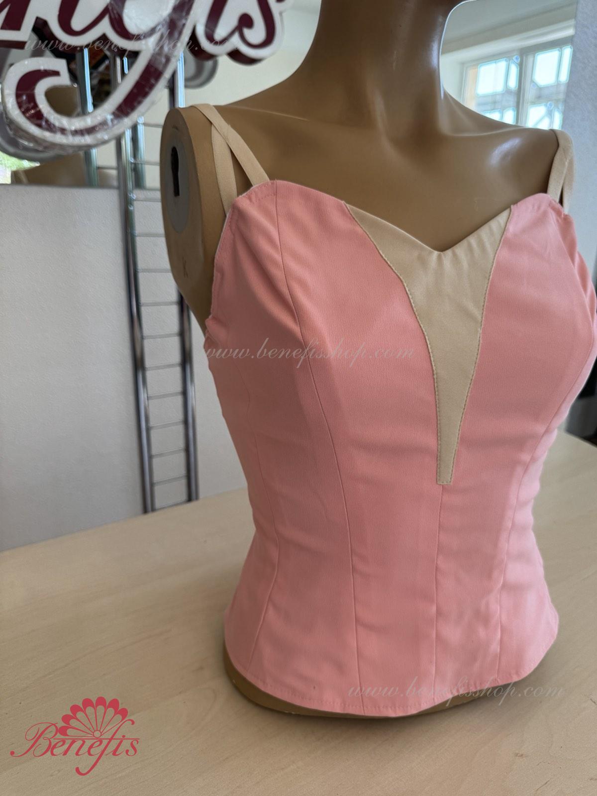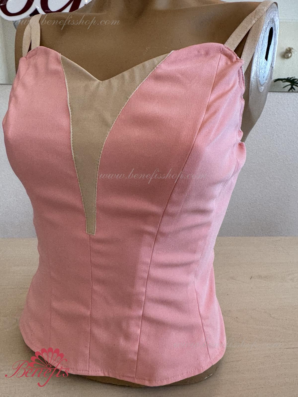Лиф, на эластичных лямках и с телесной вставкой на груди, выполнен из плотной полу эластичной ткани.