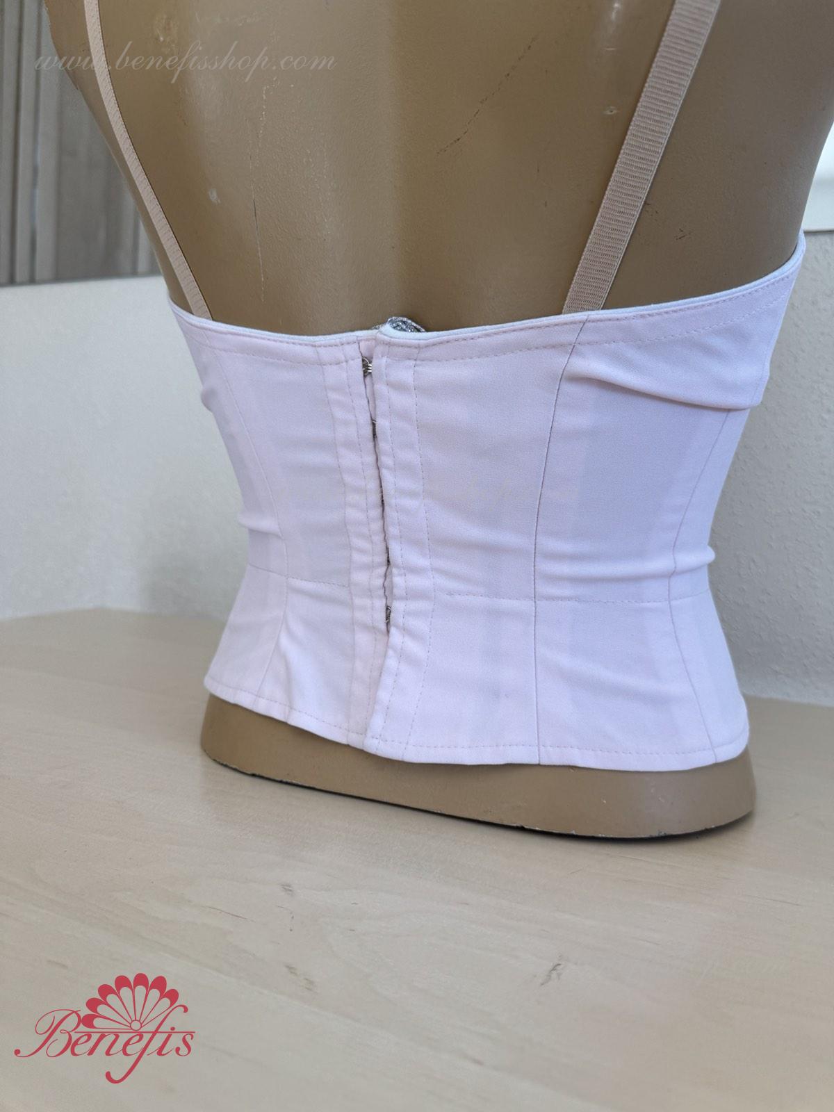 Лиф застегивается на крючки в два ряда для удобного регулирования, внутренний шнур служит для затягивания лифа в области груди.