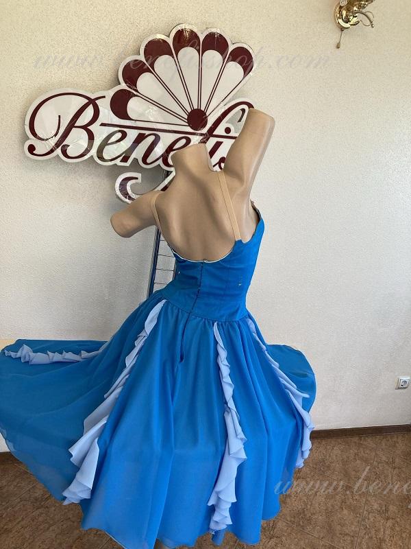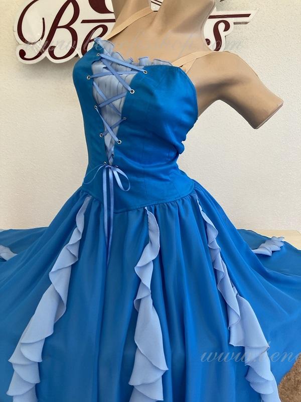 Профессиональный балетный костюм приталенного силуэта состоит из лифа, эластичных трусиков и широкой юбки из клиньев.