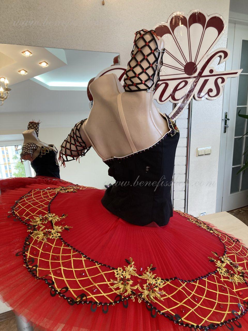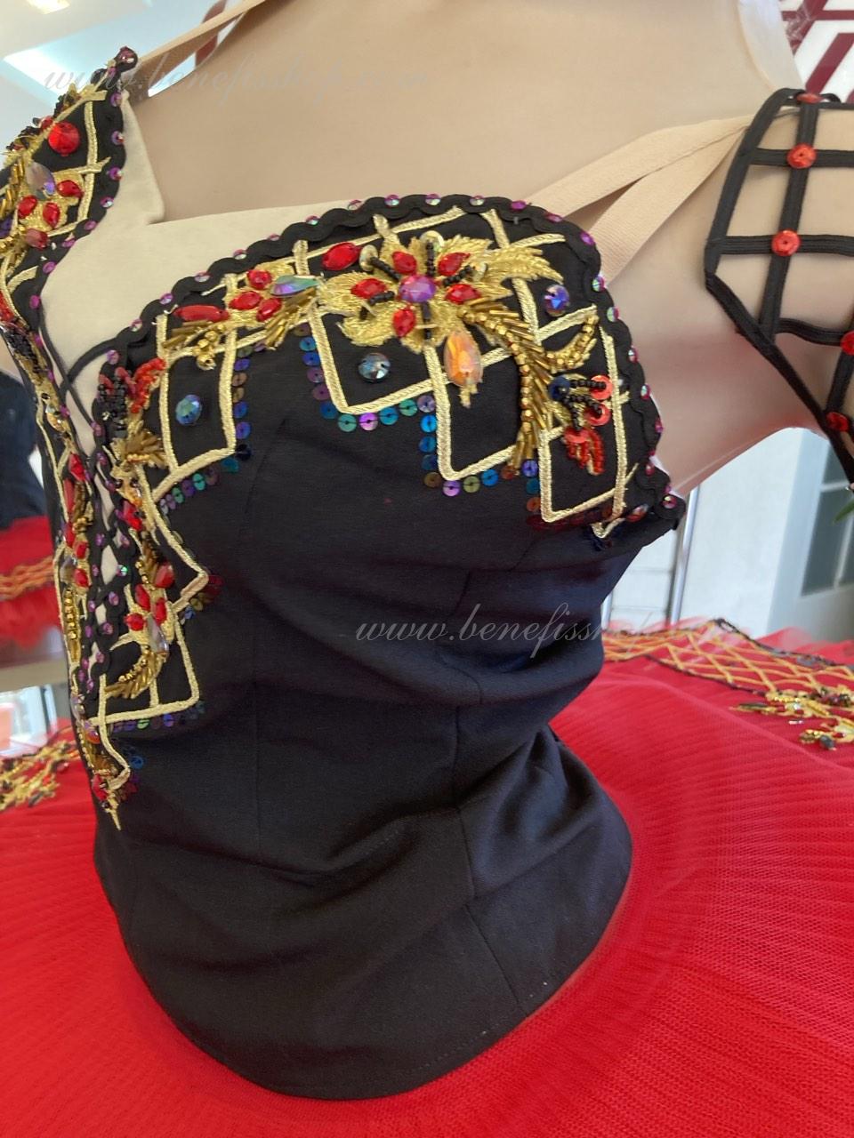 Костюм прекрасно подходит для выступлений в балетах «Дон Кихот», «Пахита», Grand Pas, он также может быть использован как концертный костюм.