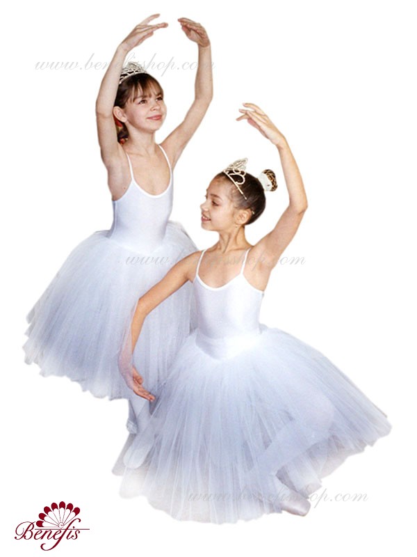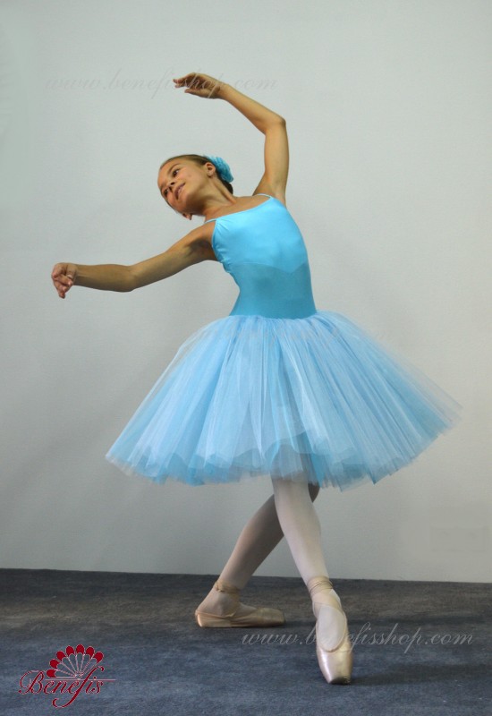 Пачка изготовлена на основе эластичного купальника и пристроченной к нему базовой романтической пачки (см. модель #Т0004). Пышная сборка. Юбка выполнена из слоёв тюля разной длины. Купальник на лямках выполнен из бифлекса. По выбору заказчика, за дополнительную плату, купальник может быть выполнен из бархата.