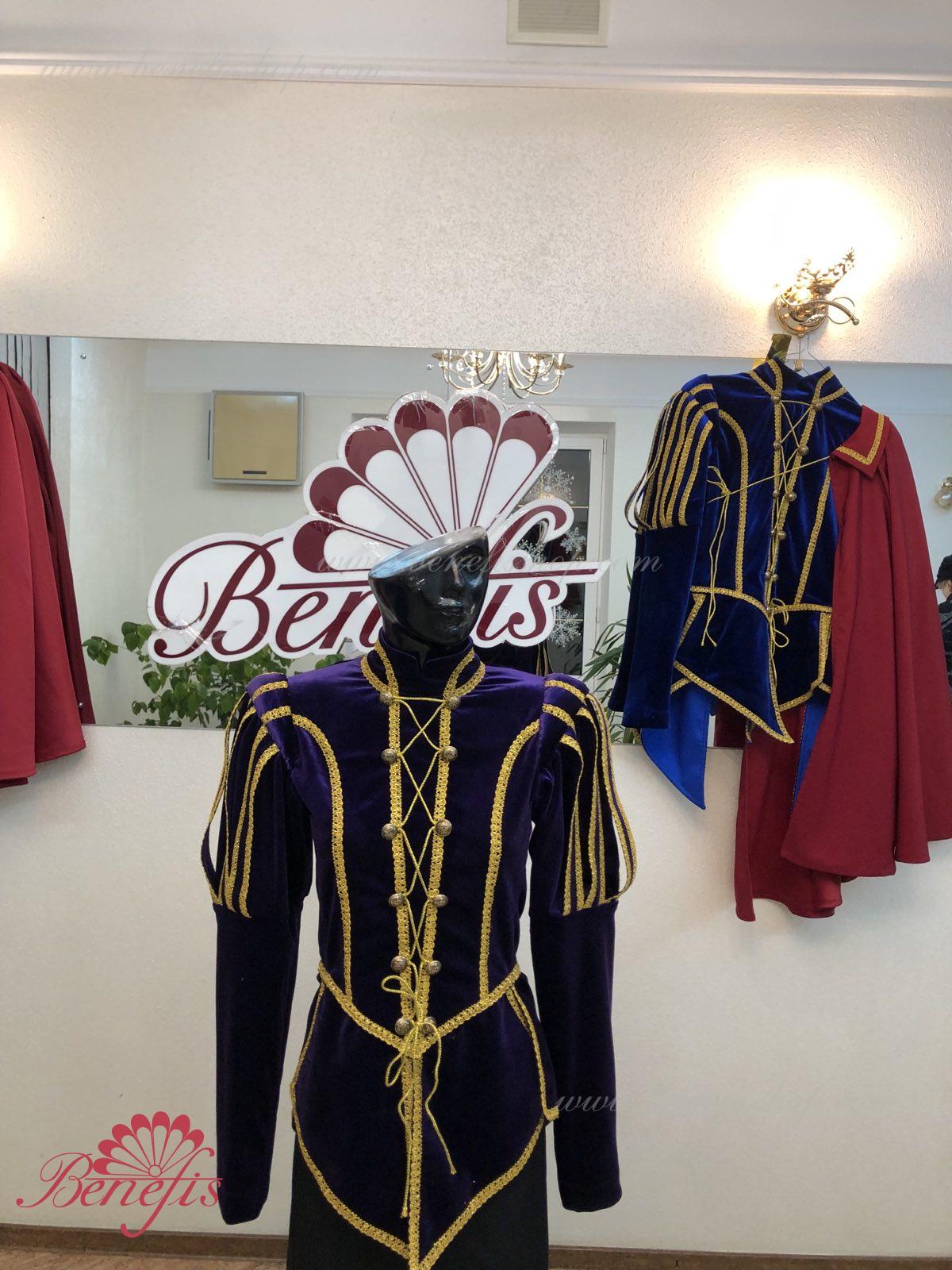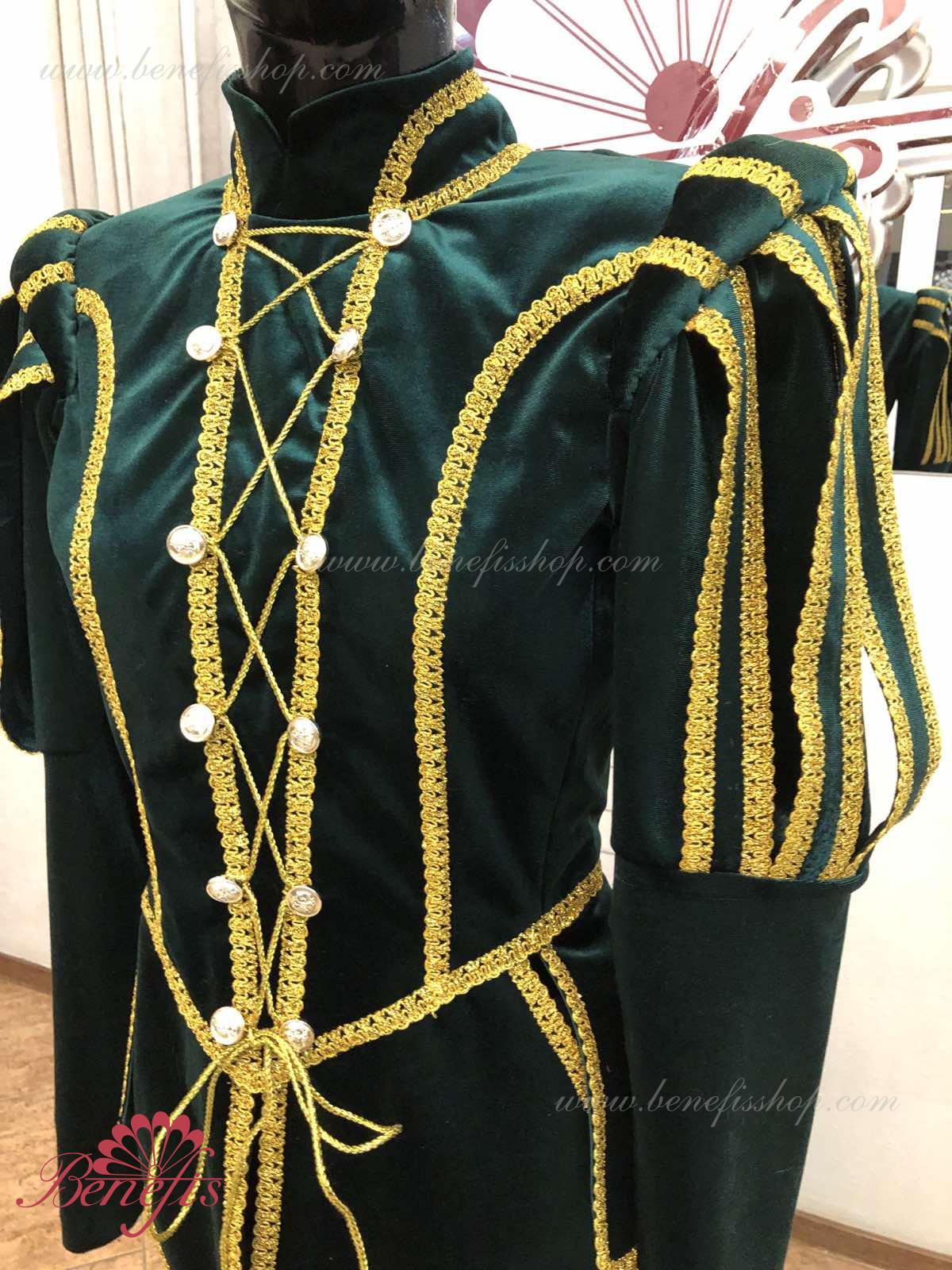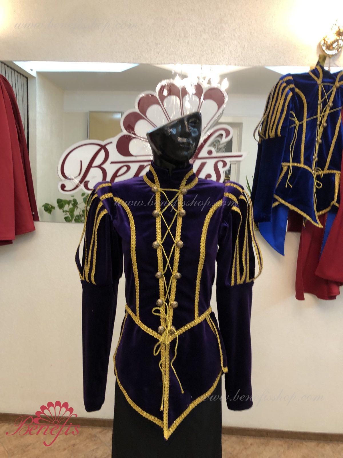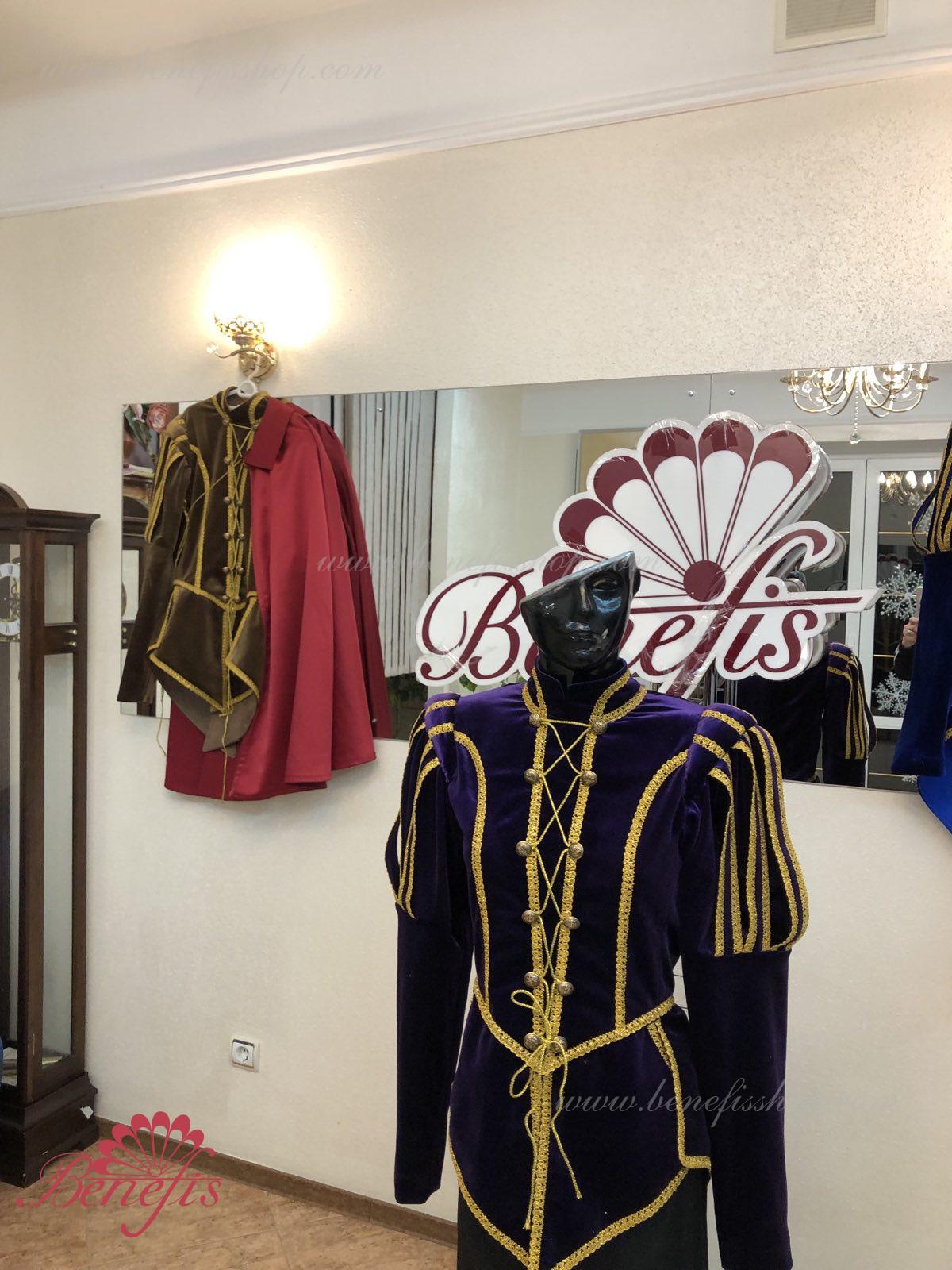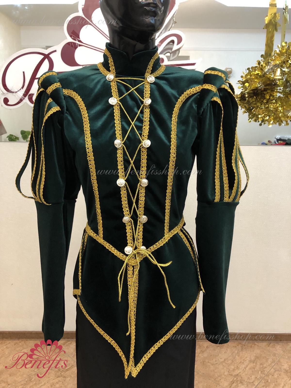 Детали : колет, накидка. Это профессиональный сценический костюм изготовленный из основе полу эластичной плотной ткани. Колет застегивается сзади на крючки и петли. В качестве декора используется пуговицы впереди колета. Костюм может быть выполнен в любом цвете по выбору заказчика. Над изделием работают только профессиональные швеи и конструктора.