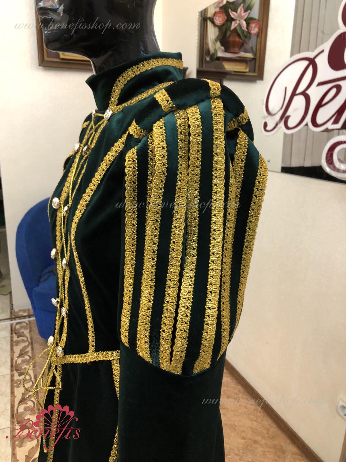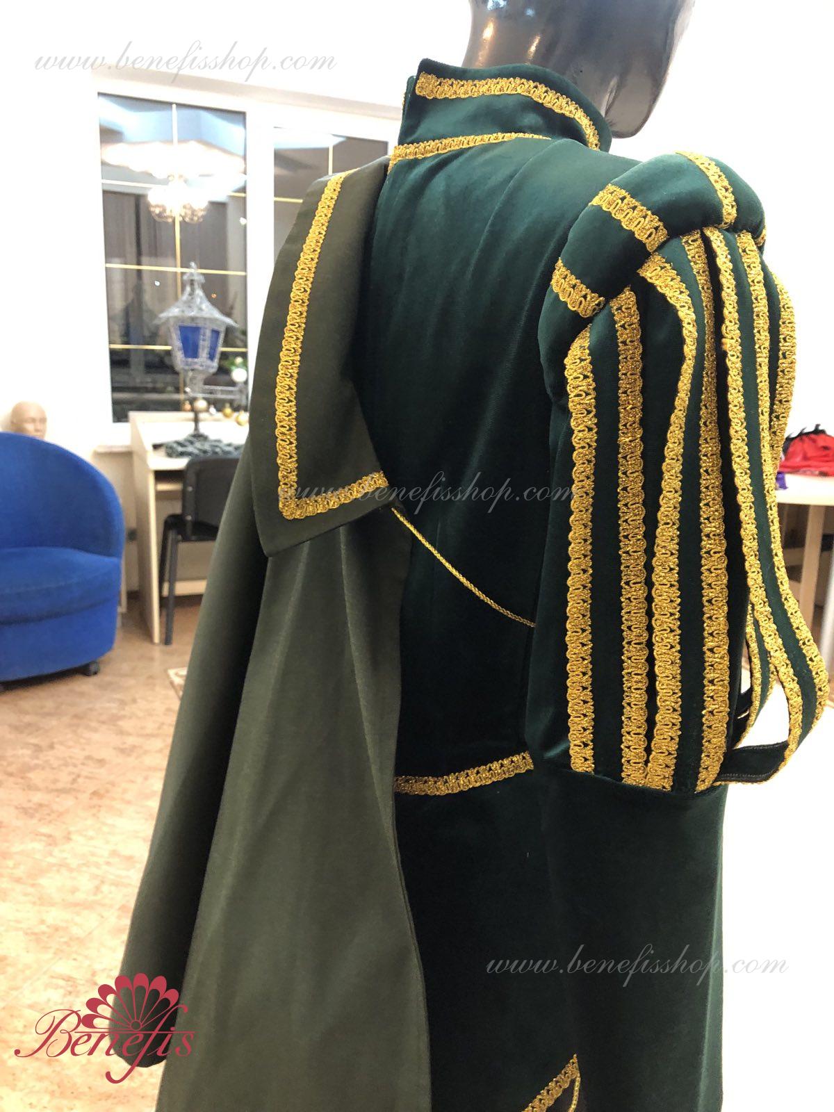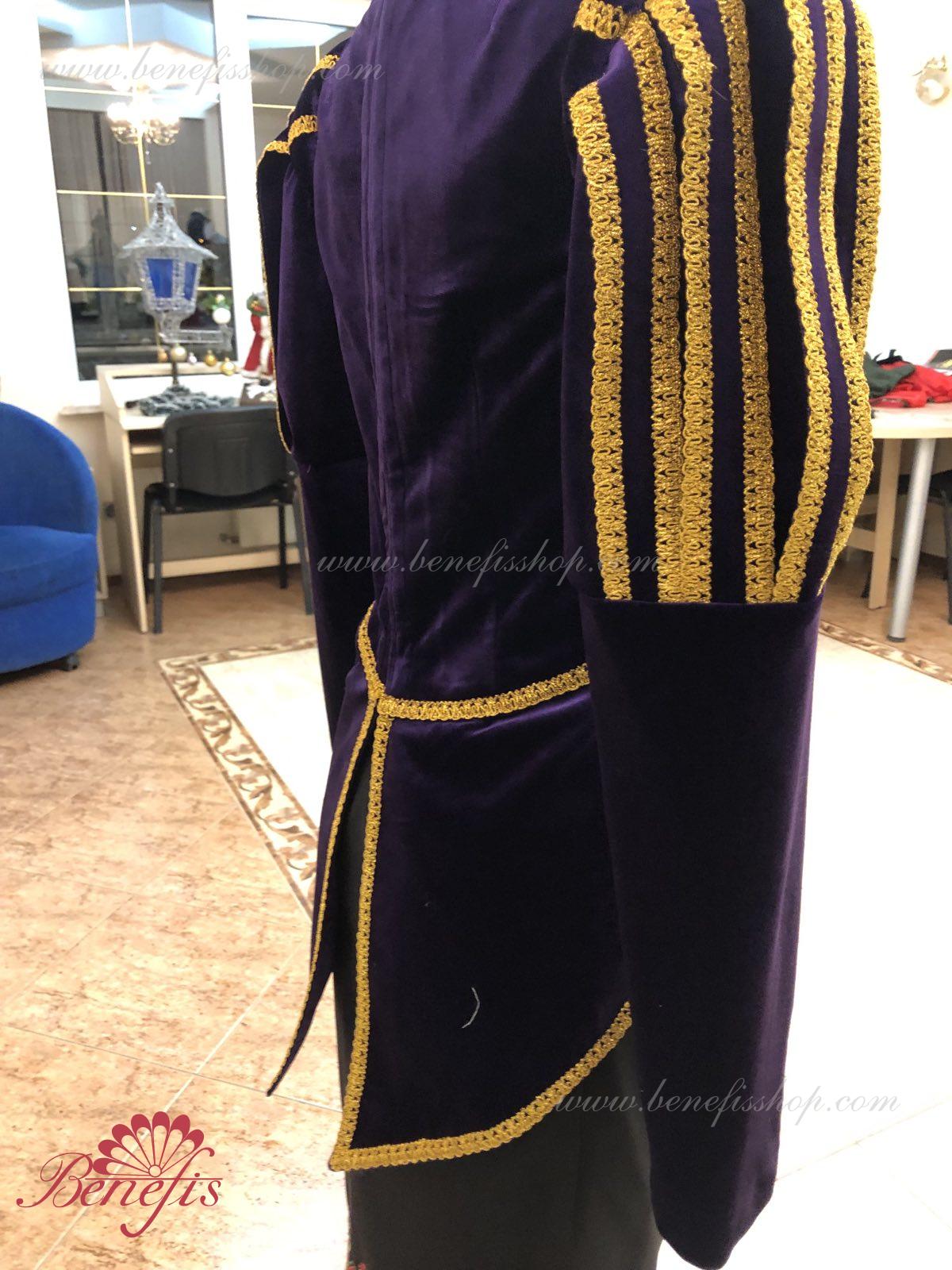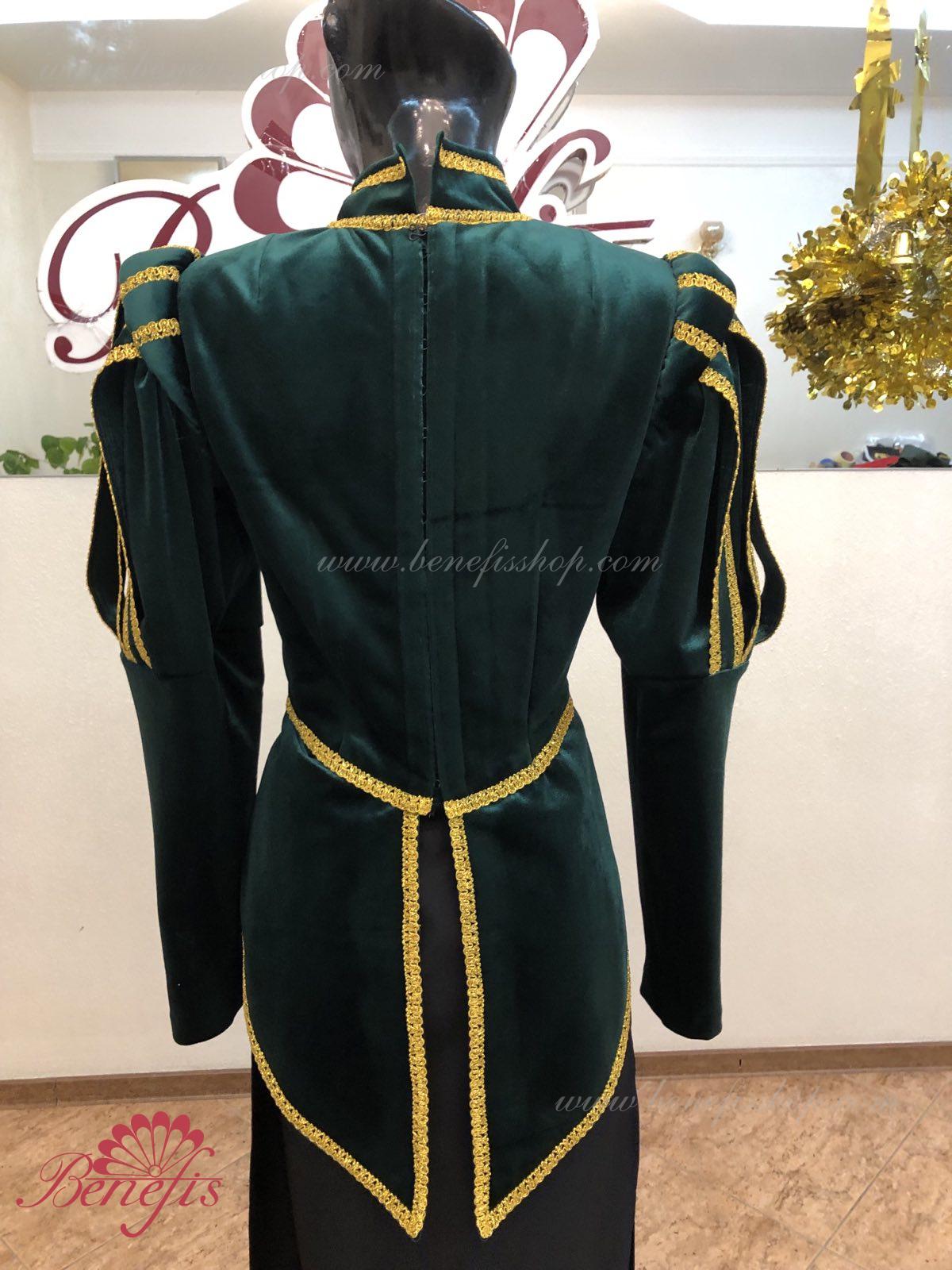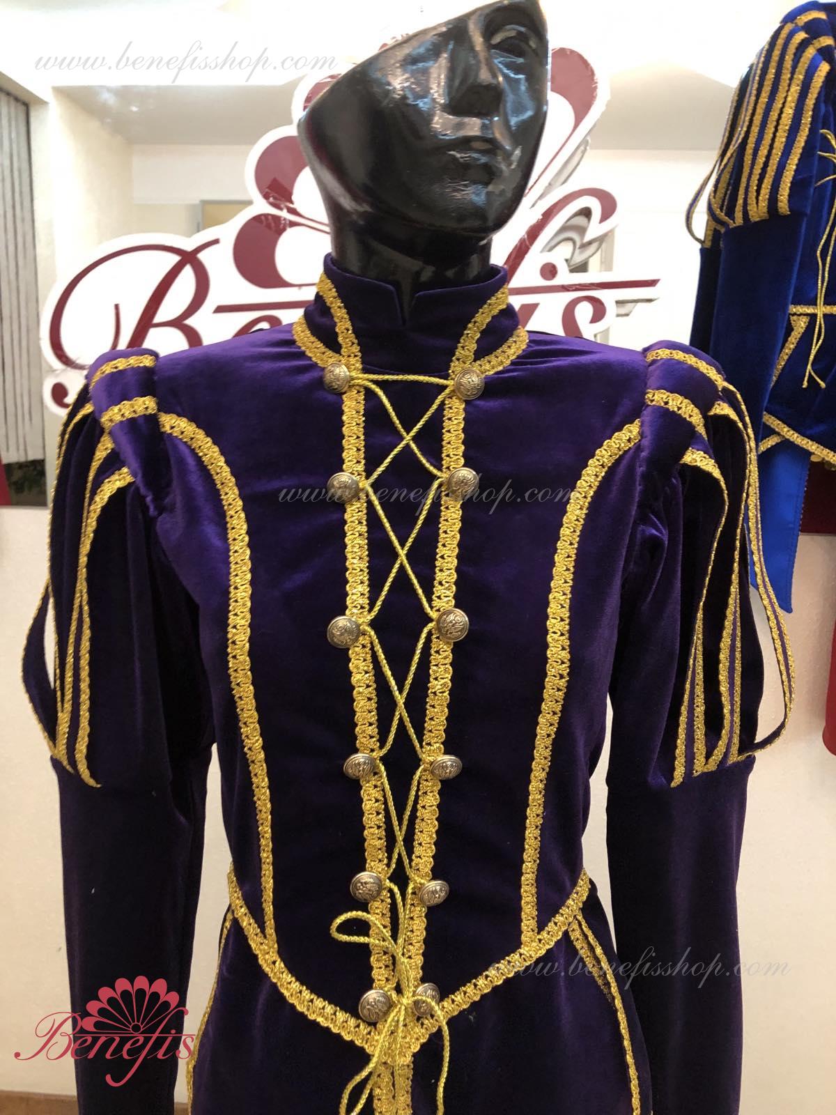 Детали : колет, накидка. Это профессиональный сценический костюм изготовленный из основе полу эластичной плотной ткани. Колет застегивается сзади на крючки и петли. В качестве декора используется пуговицы впереди колета. Костюм может быть выполнен в любом цвете по выбору заказчика. Над изделием работают только профессиональные швеи и конструктора.