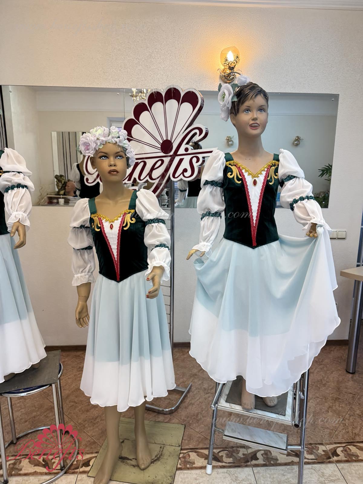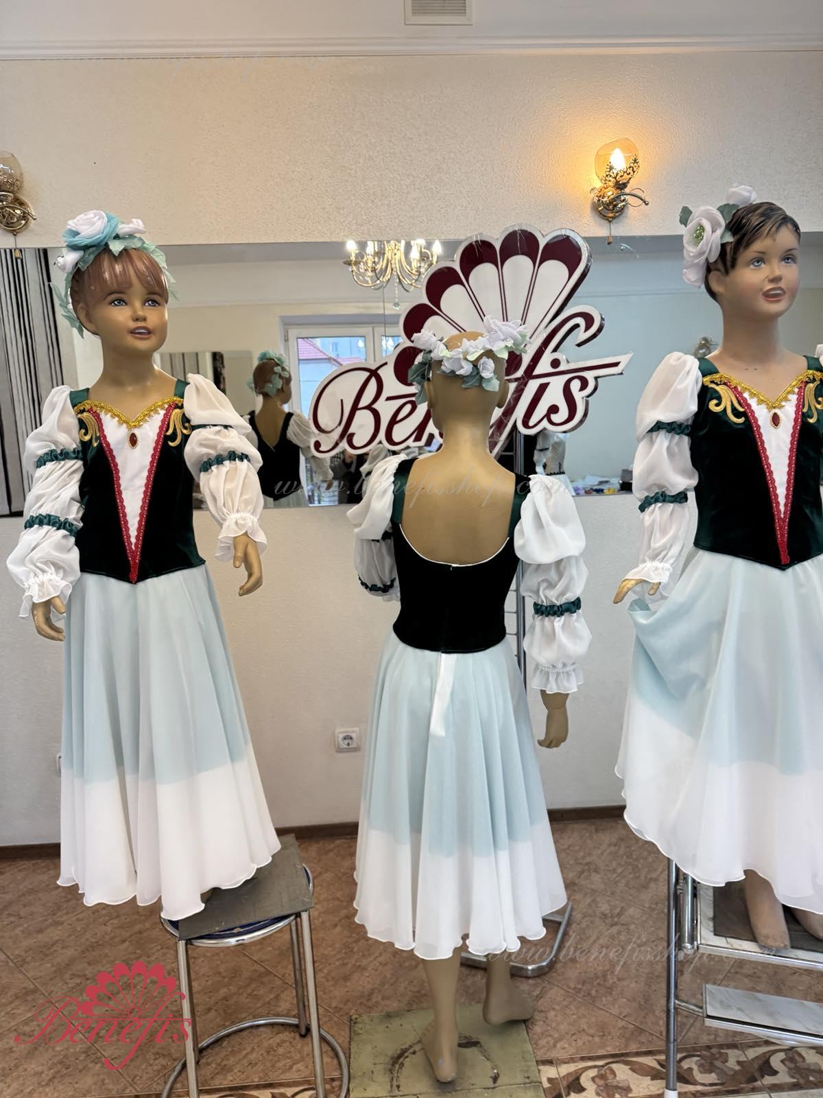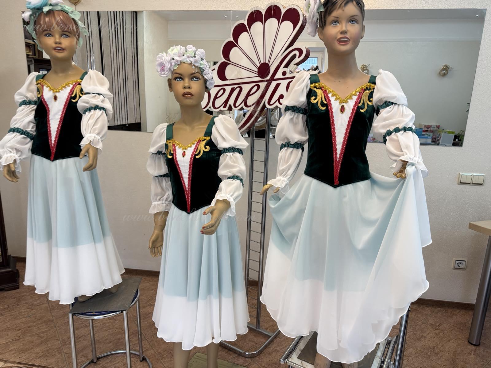 Это профессиональный сценический балетный костюм. Лиф выполнен из полу эластичной плотной ткани застегивается на спине на два ряда крючков и петель. Для удобного регулирования лиф можно затянуть шнурком в области груди.