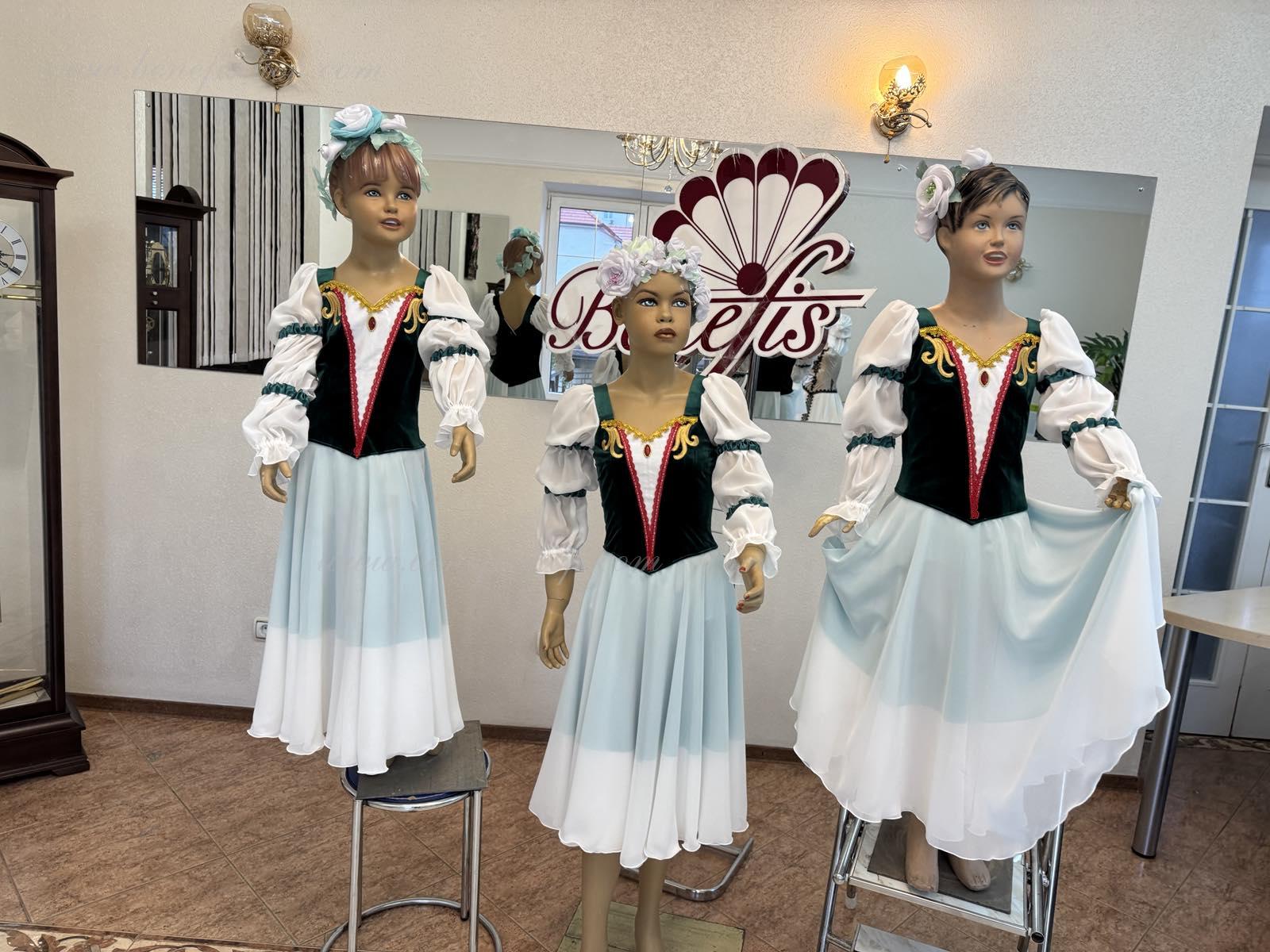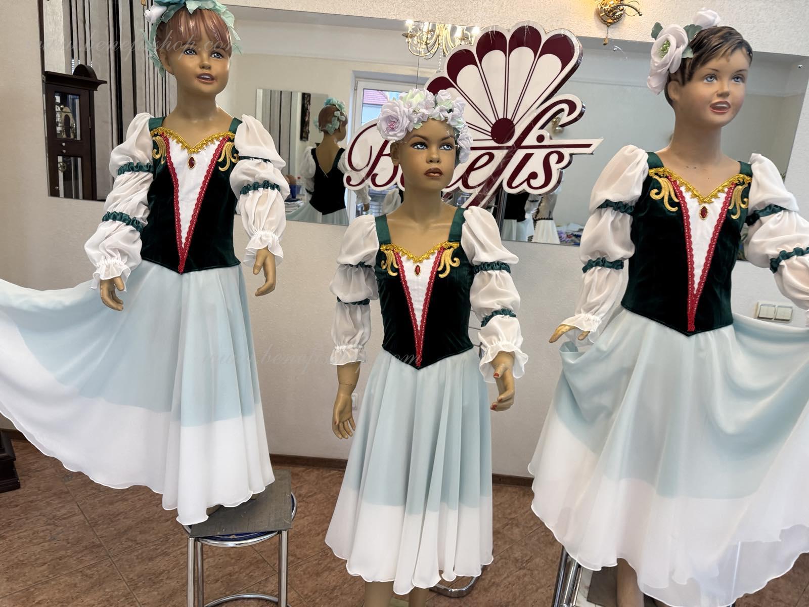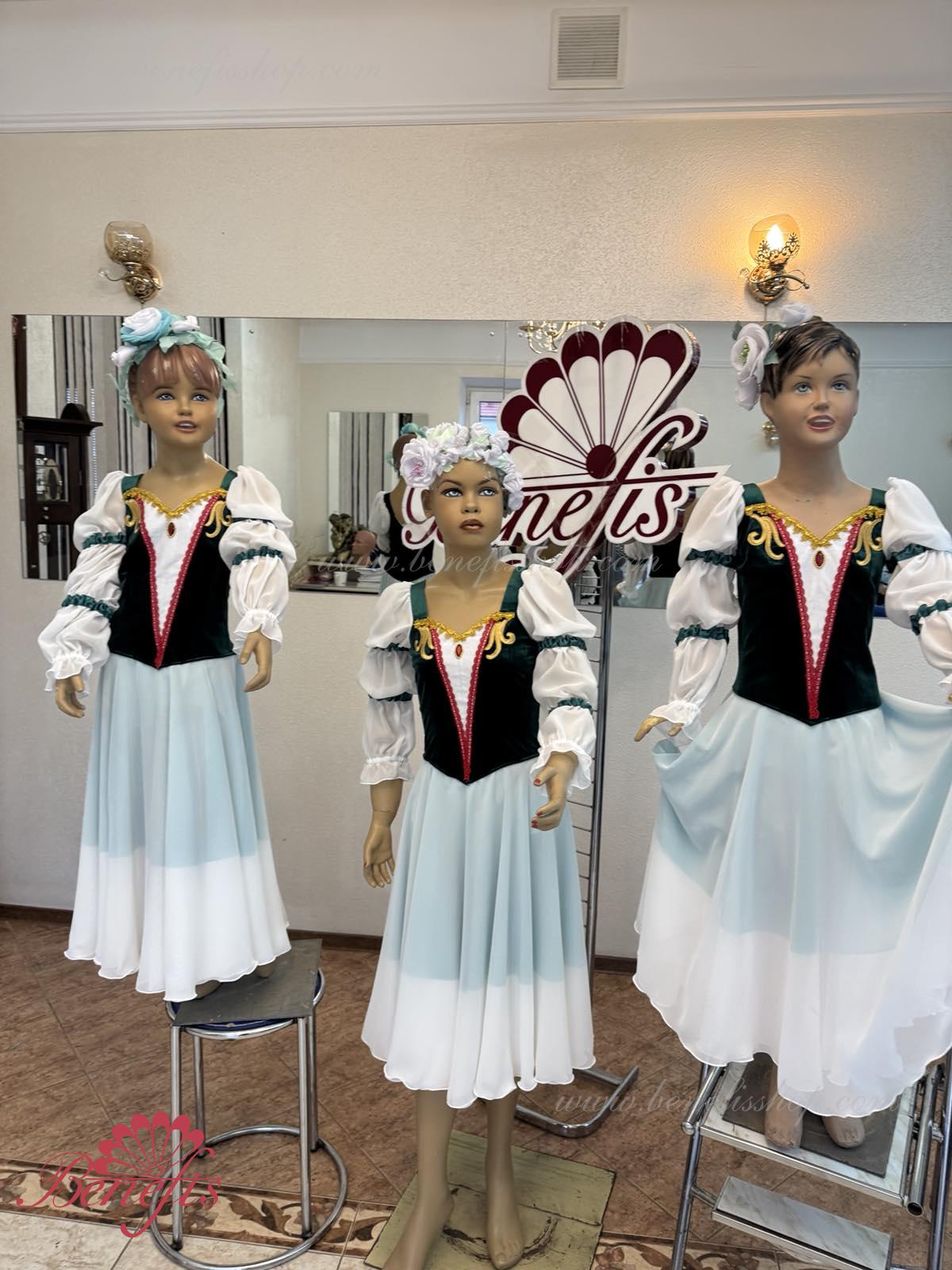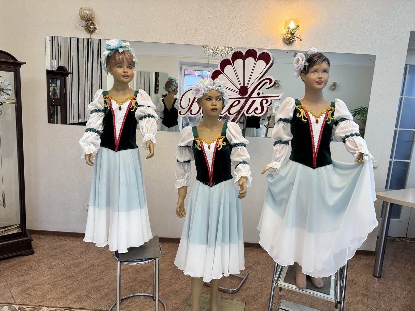 Это профессиональный сценический балетный костюм. Лиф выполнен из полу эластичной плотной ткани застегивается на спине на два ряда крючков и петель. Для удобного регулирования лиф можно затянуть шнурком в области груди.