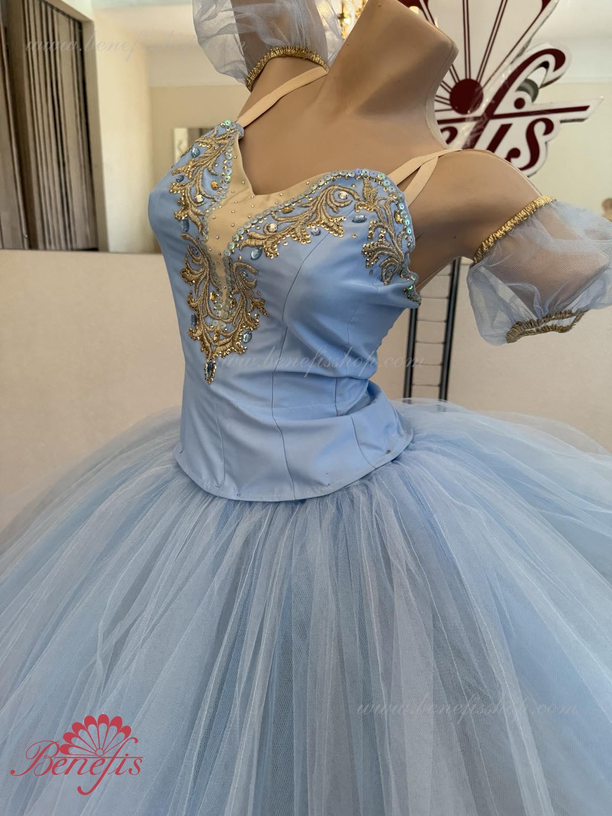 Лиф застегивается на крючки в два ряда для удобного регулирования, внутренний шнур служит для затягивания лифа в области груди. Эта воздушная романтическая базовая пачка состоит из шести слоёв мягкого и жёсткого тюля, выполненных из множества клиньев. Все слои посажены на трусики из тюля. Трусики соединены с кокеткой (7см) из тюля, прикреплённой к эластичному поясу.