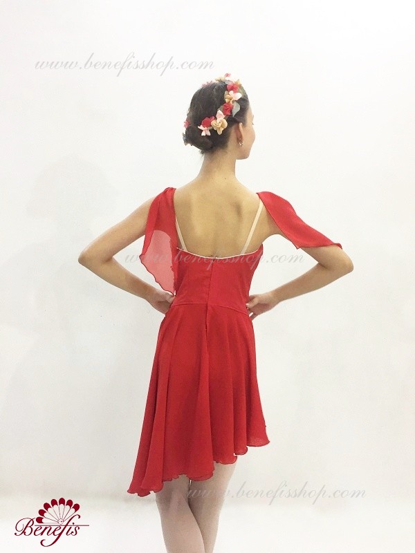 Этот профессиональный балетный сценический костюм выполнен на основе 2 юбок из лёгкого шифона с трусами из бифлекса. Лиф на эластичных лямках застёгивается сзади на два ряда крючков.