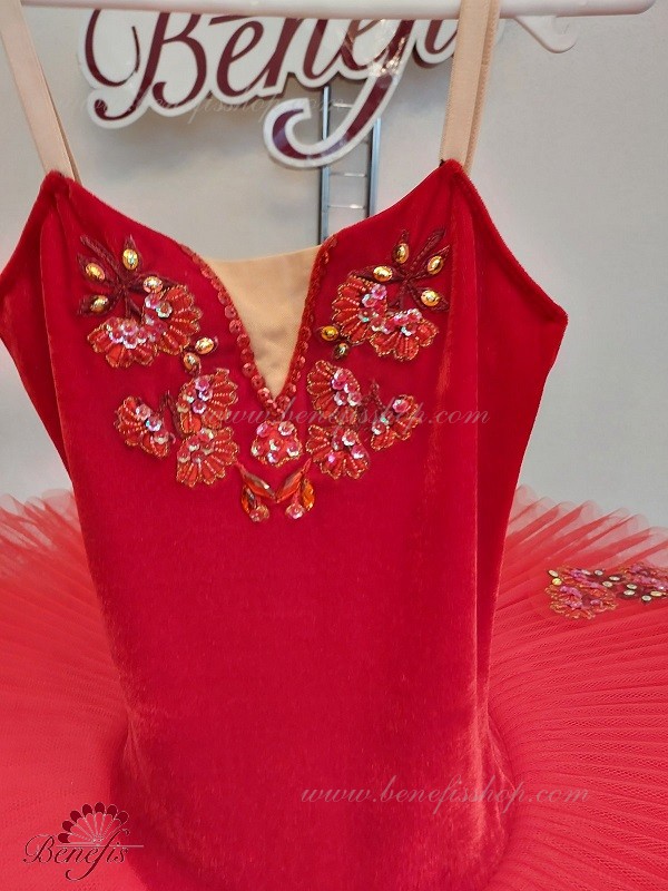 Детали: костюм. Это профессиональный, балетный, сценический костюм. Основан на базовой модели T0005 и A0001.Изготовлен из плотного полу-эластичного бархата и плотного тюля. В качестве декора используются аппликации, бисер, блестки, стразы.