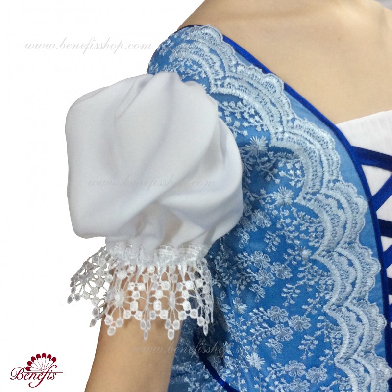 Лиф из полуэлостичной ткани дублирован гипюром. На передней части используется вставка из плиссированного шифона и декоративной тесьмы.