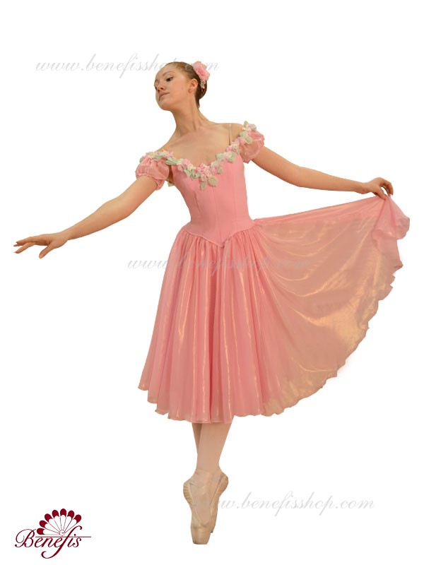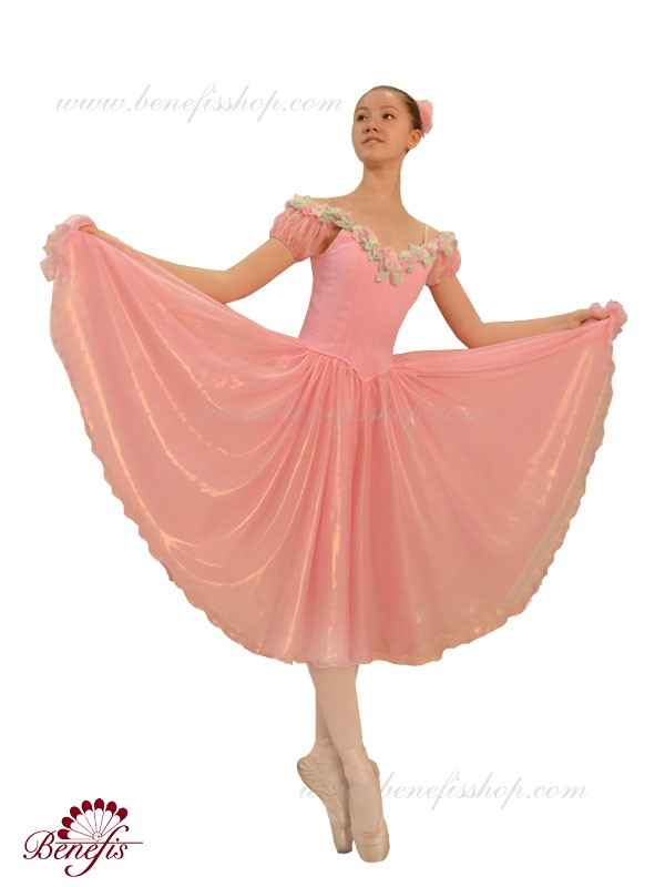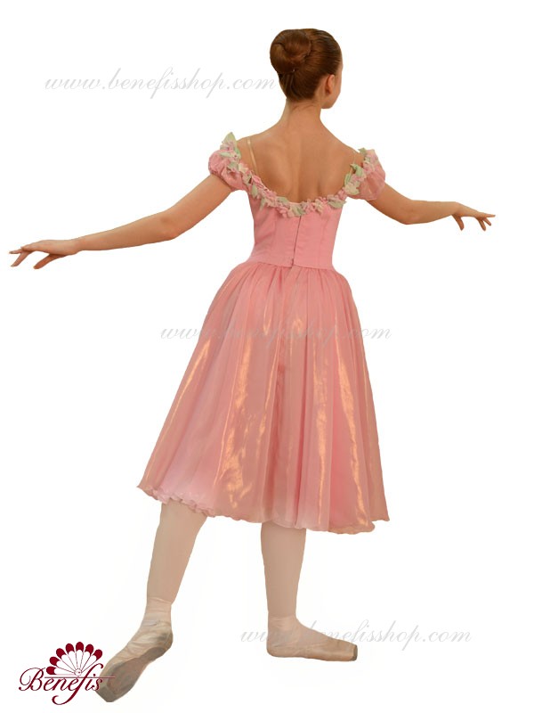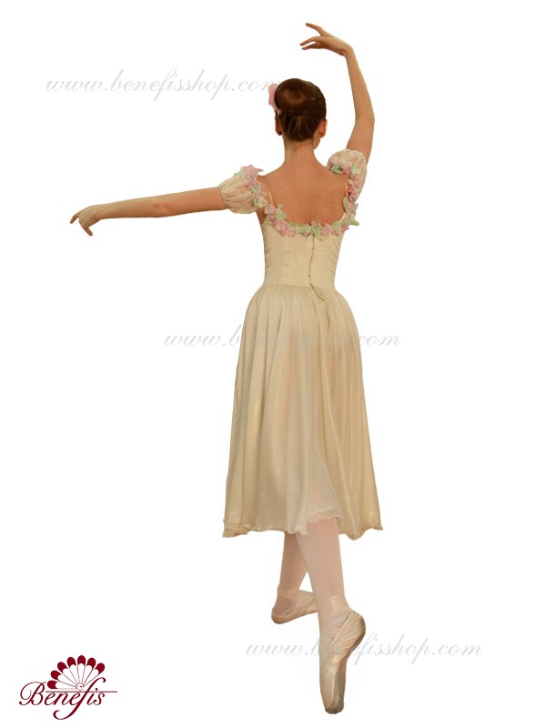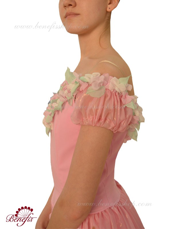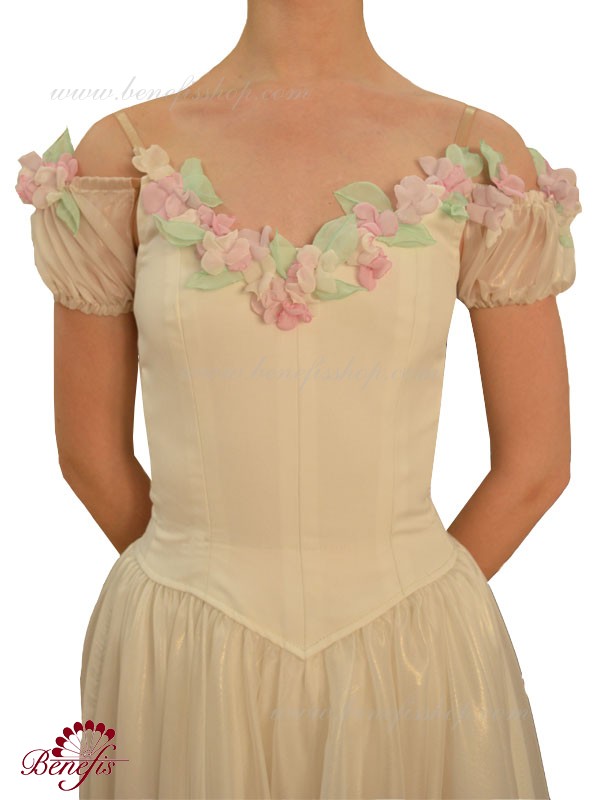 Лиф застегивается на крючки в два ряда для удобного регулирования, а внутренний шнур служит для затягивания лифа в области груди. Декор : цветочки из атласа.