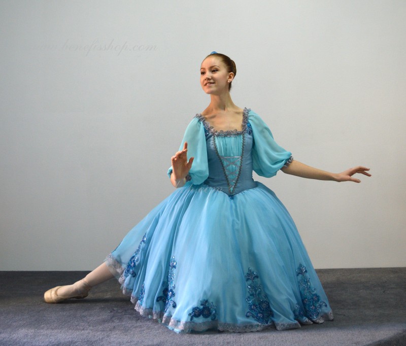 Юбка состоит из шести слоев мягкого и жесткого фатина выполнен из множество клиньев. Все слои посажены на трусики. Верхний слой юбки из шифона. По краю юбка декорирована аппликациями и кружевом.