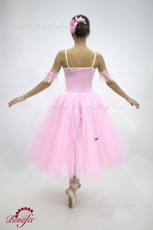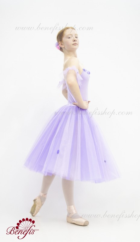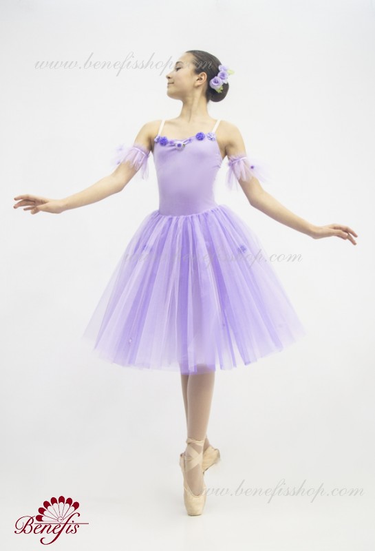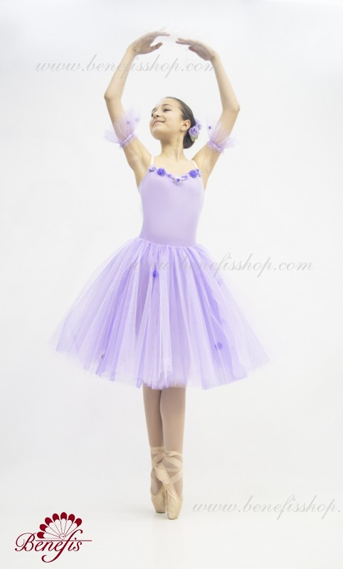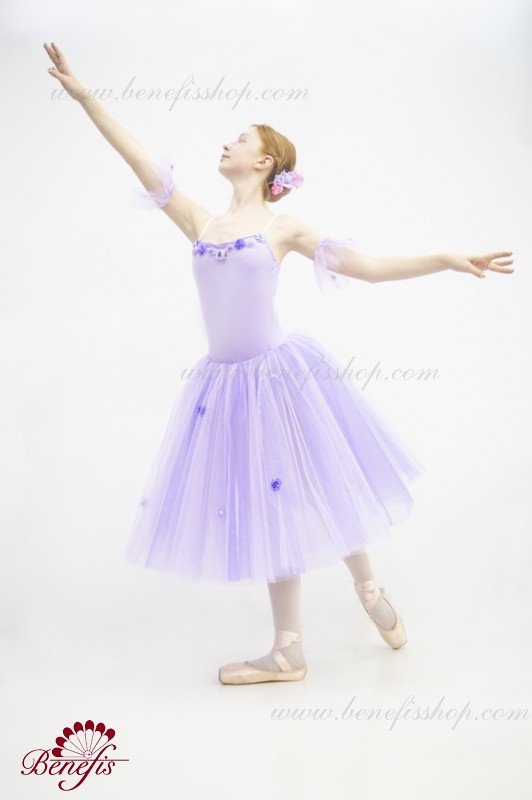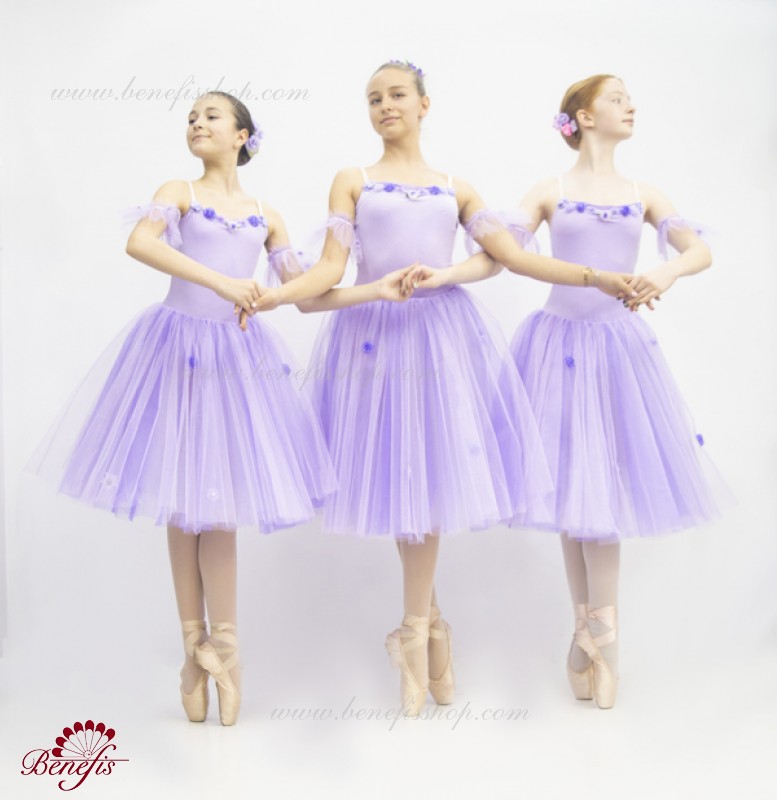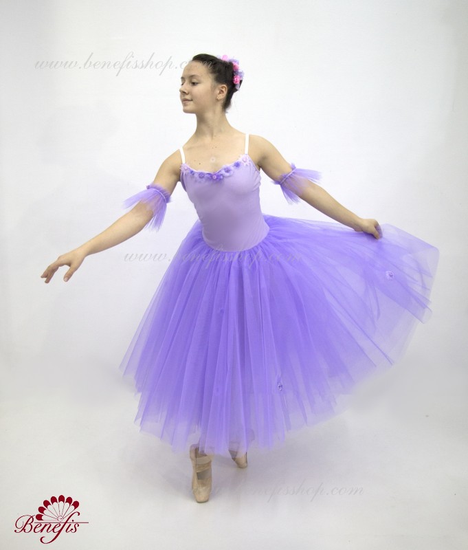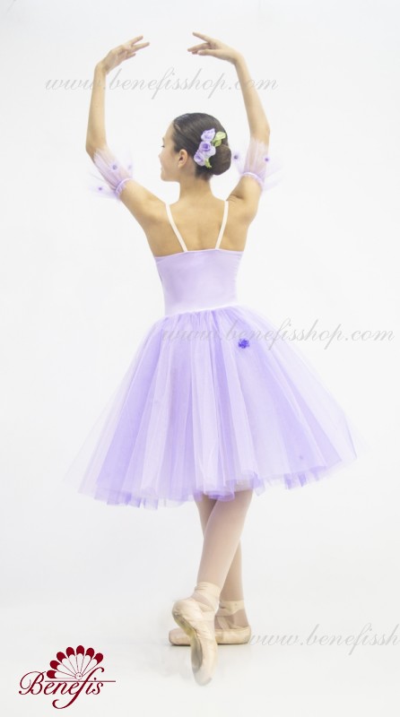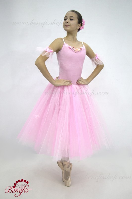 Детали: платье, рукавчики. Это профессиональный балетный, сценический костюм. Изготовлен из эластичного бифлекса нежного тюля. Купальник основан на базовой модели A0001. В качестве декора используются цветочки и бантики. Юбка из четырех слоев мягкого и плотного фатина.