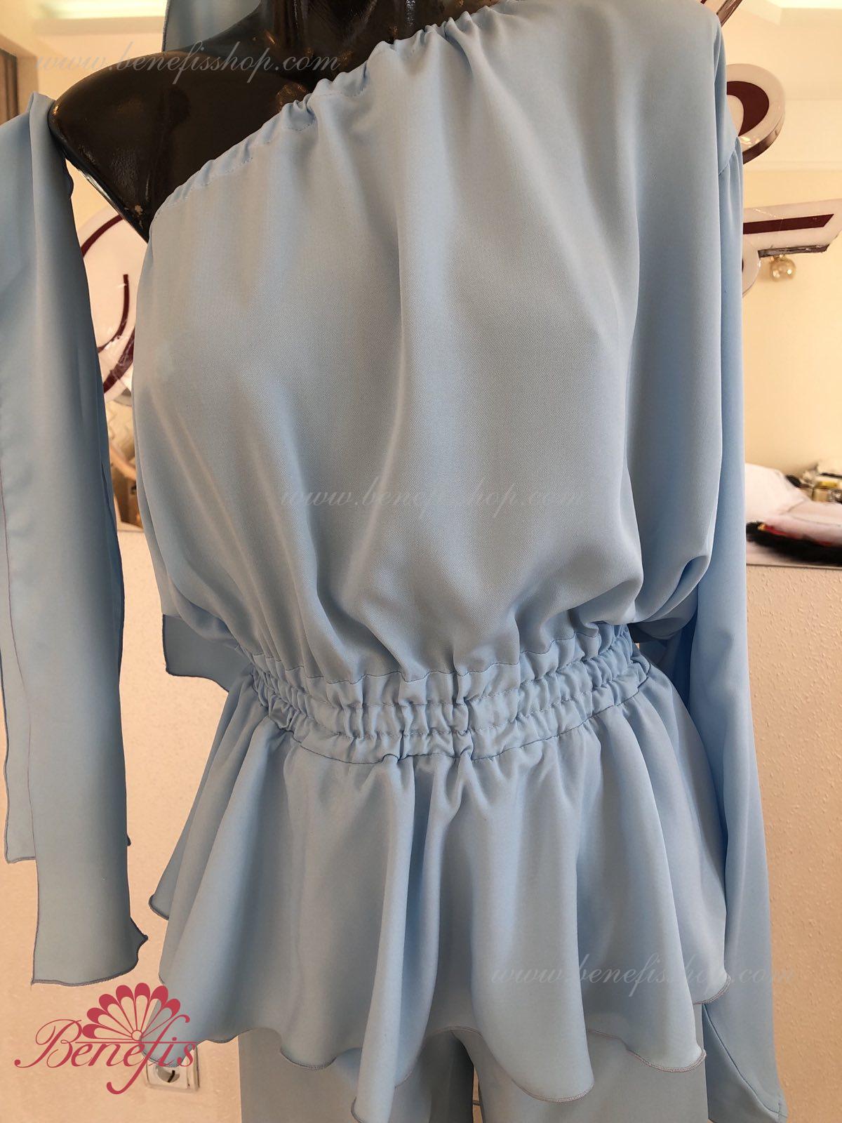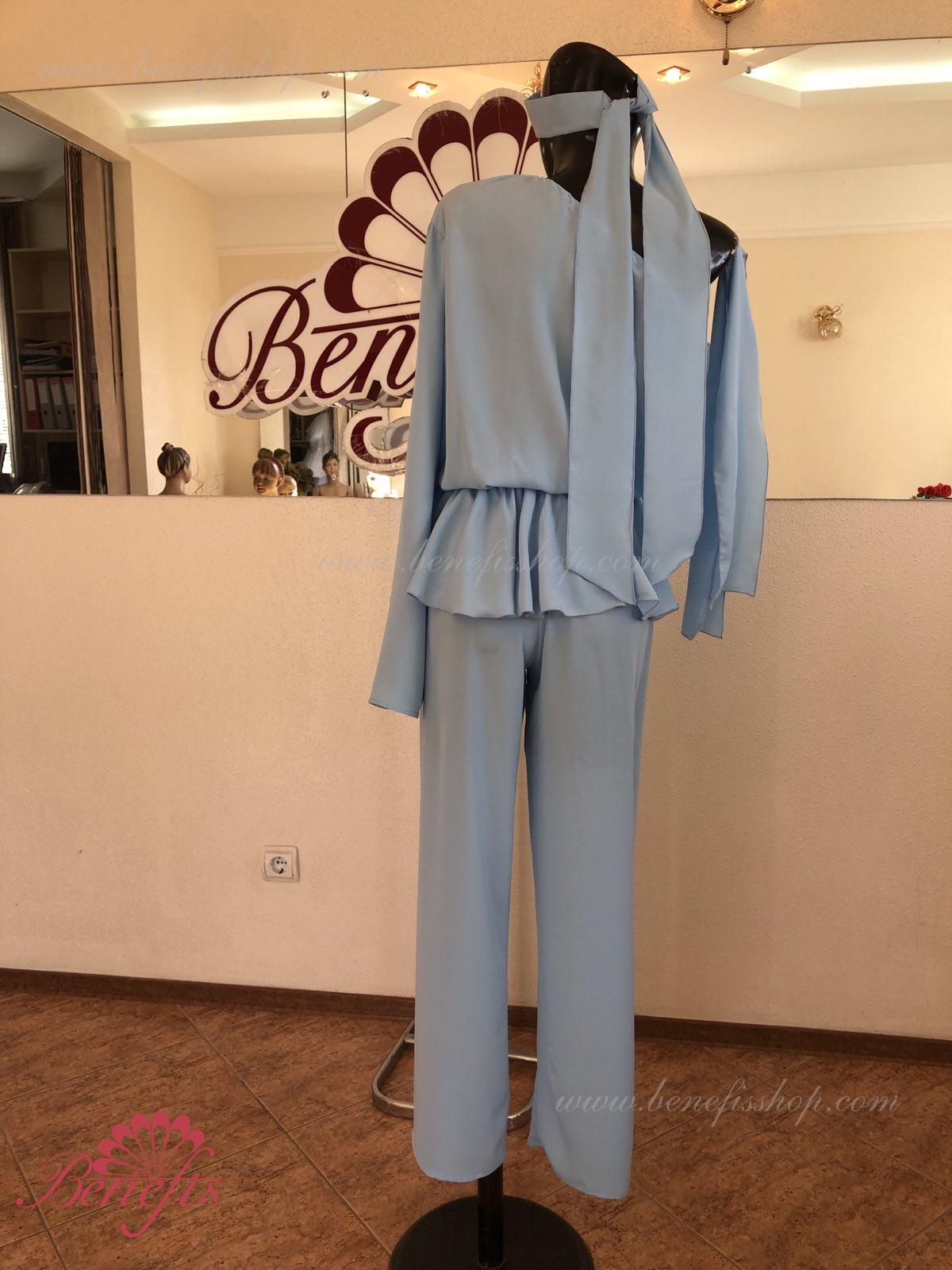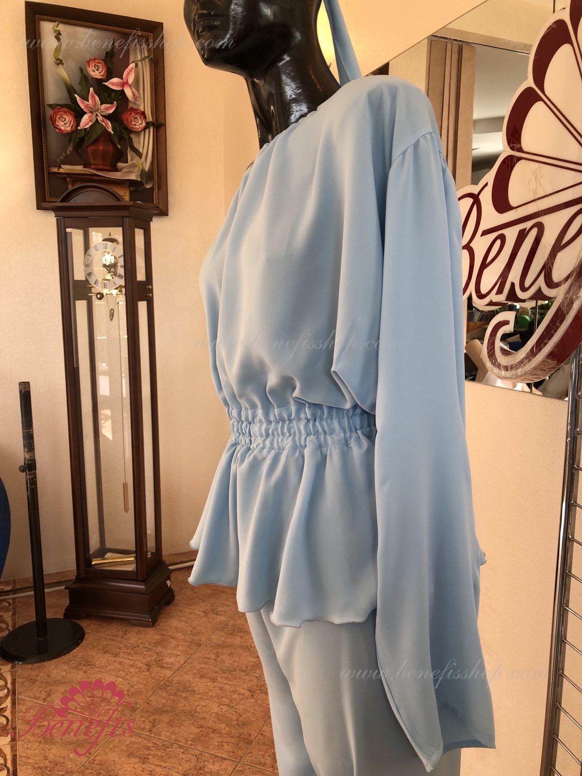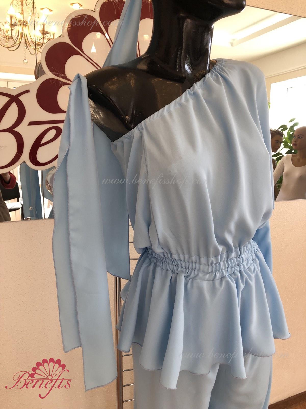 Детали: блузка, брюки, головной убор, завязка для руки. Изготовлен из шифона.