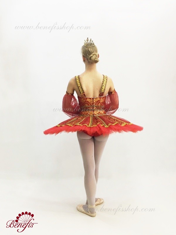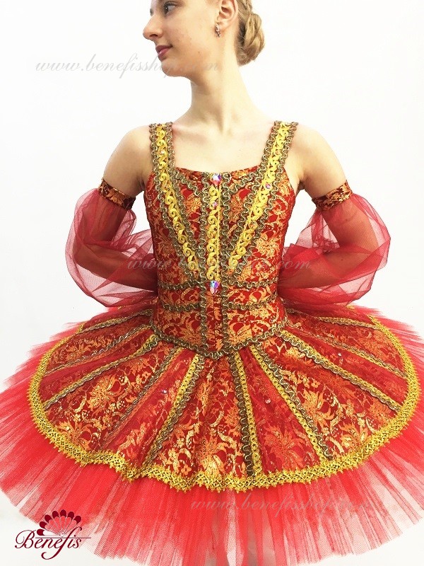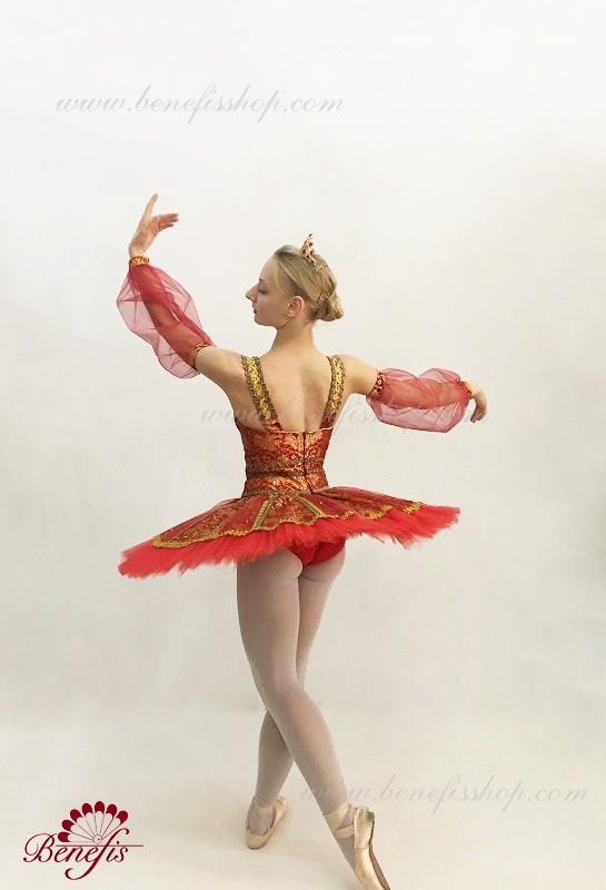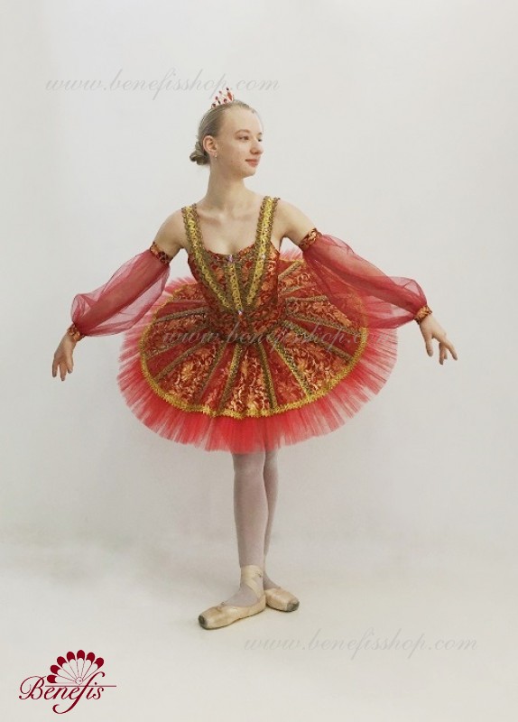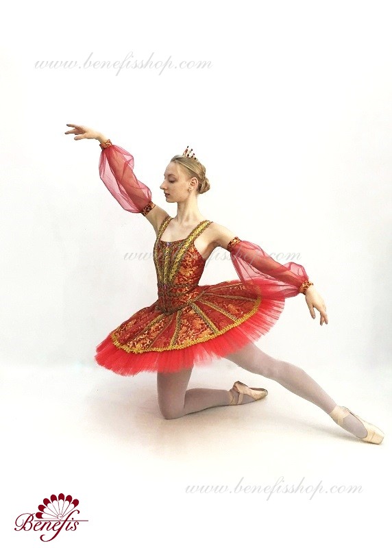Детали: платье+ рукава. Это профессиональный, балетный, сценический костюм. Изготовлен из полу эластичной, плотной ткани и гипюра . Лиф застегивается сзади на два ряда крючков, в области груди лиф можно затянуть внутренним шнуром для удобного регулирования. Базик основан на базовой модели T0001B. В качестве декора используется тесьма, аппликации и стразы. В костюм не входит диадема ее можно приобрести в разделе Аксессуары модели S0020.