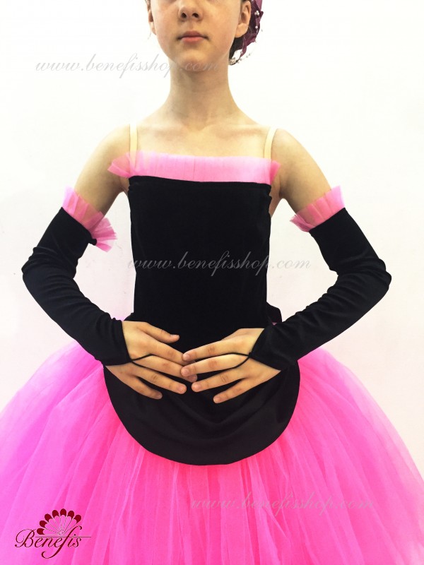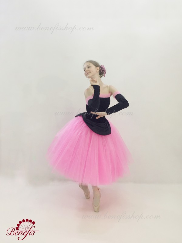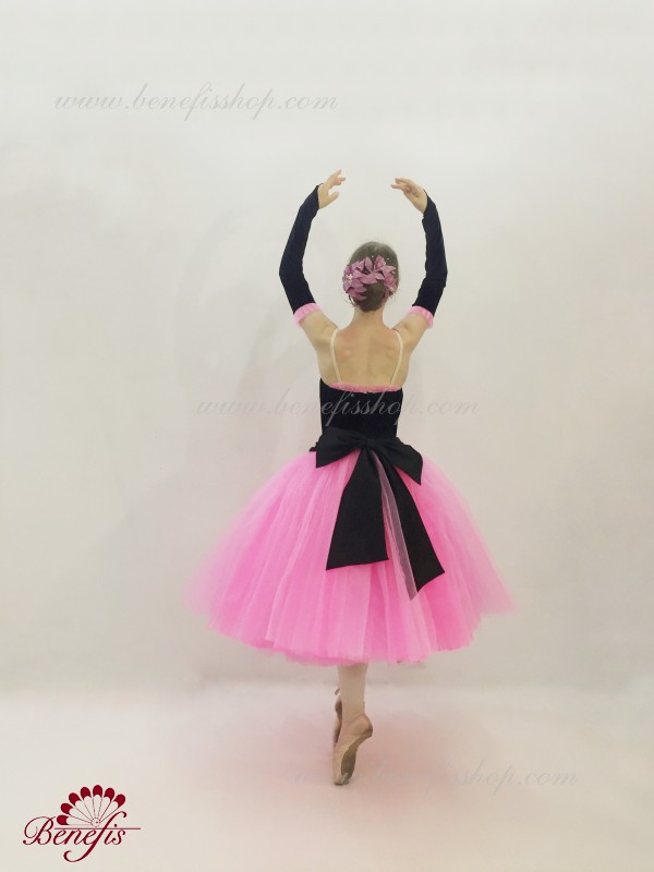 Лиф застегивается на крючки в два ряда для удобного регулирования, внутренний шнур служит для затягивания лифа в области груди. Эта воздушная романтическая базовая пачка состоит из шести слоёв мягкого и жёсткого тюля, выполненных из множества клиньев. Все слои посажены на трусики из тюля. Трусики соединены с кокеткой (7см) из тюля, прикреплённой к эластичному поясу.