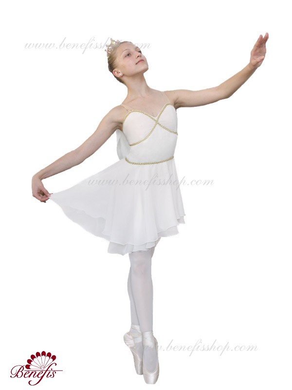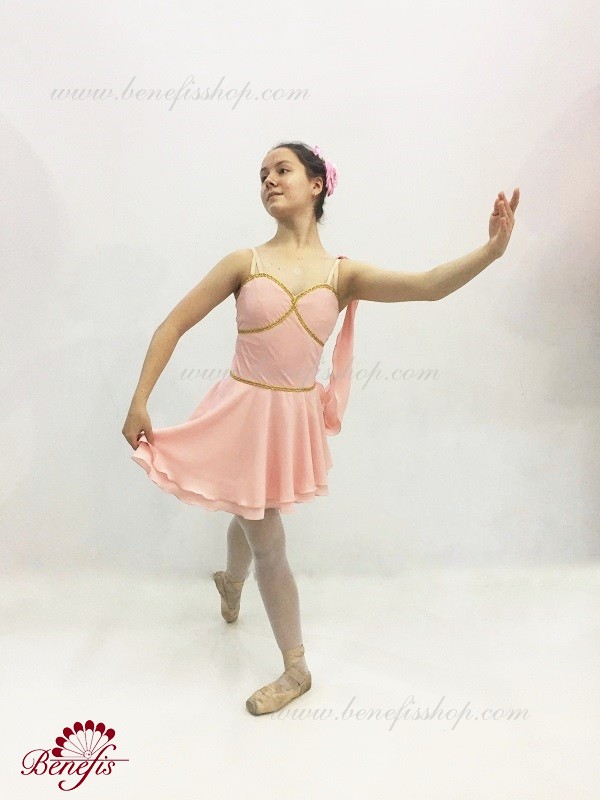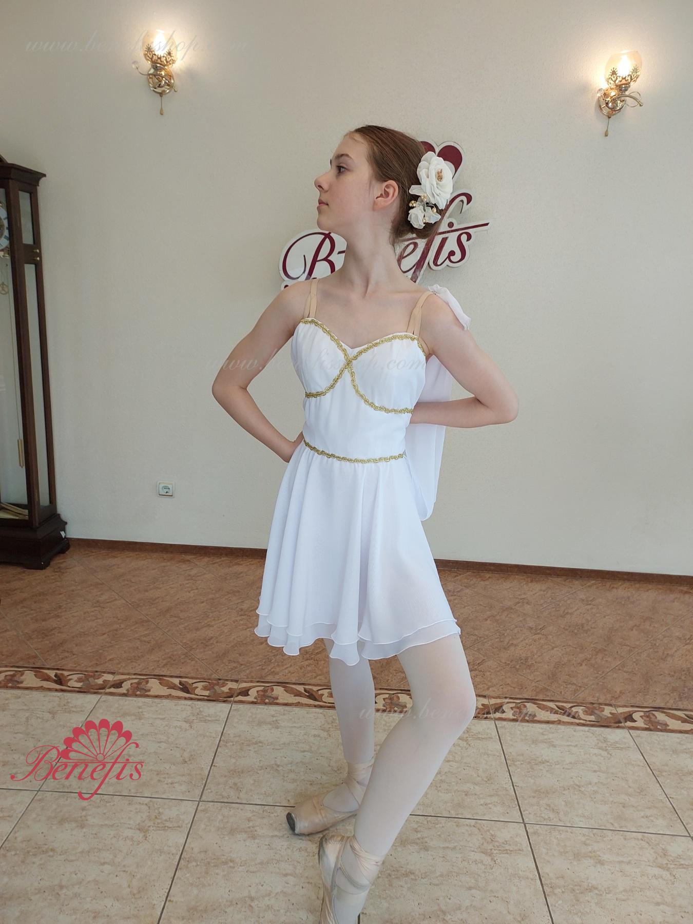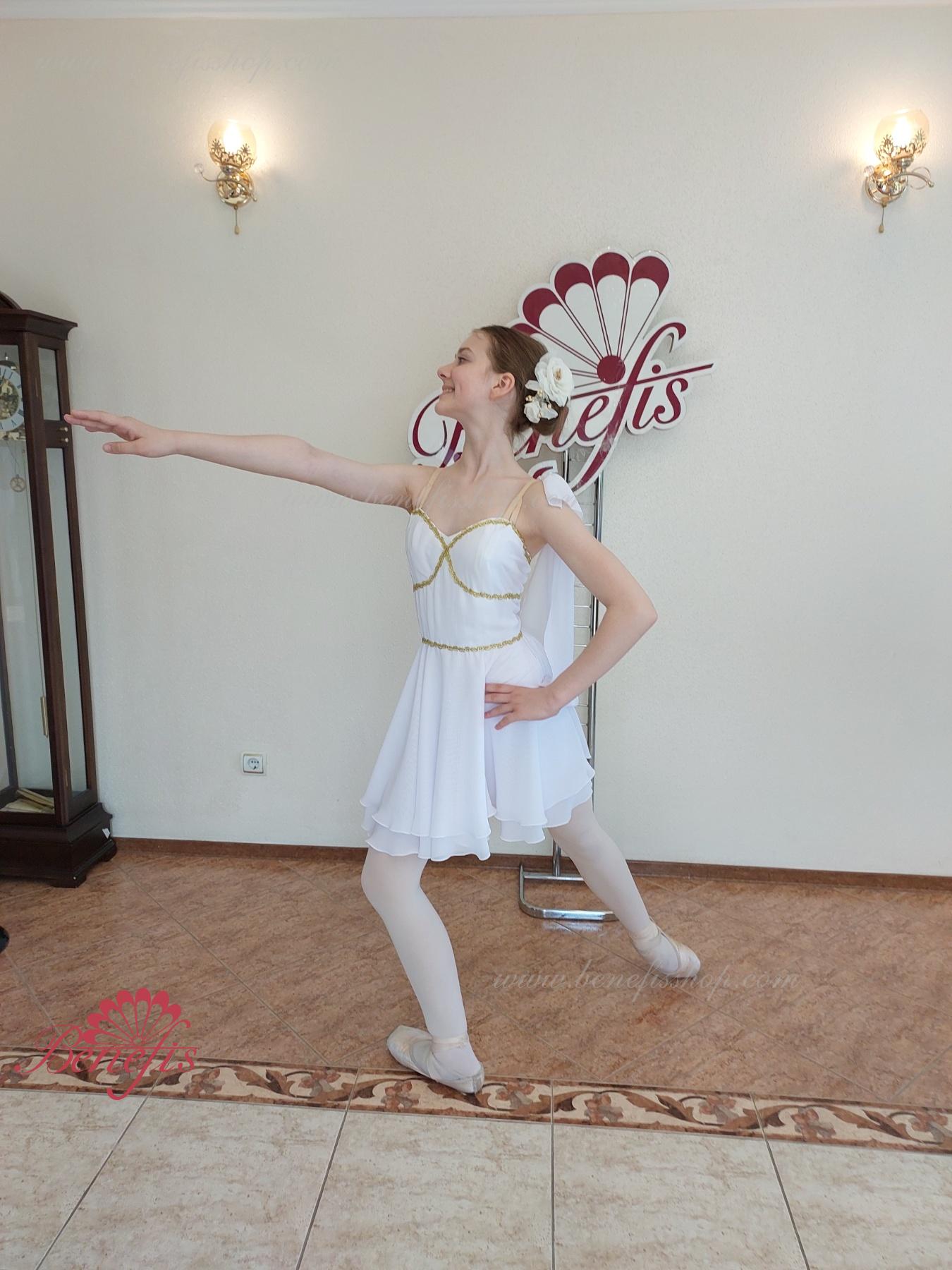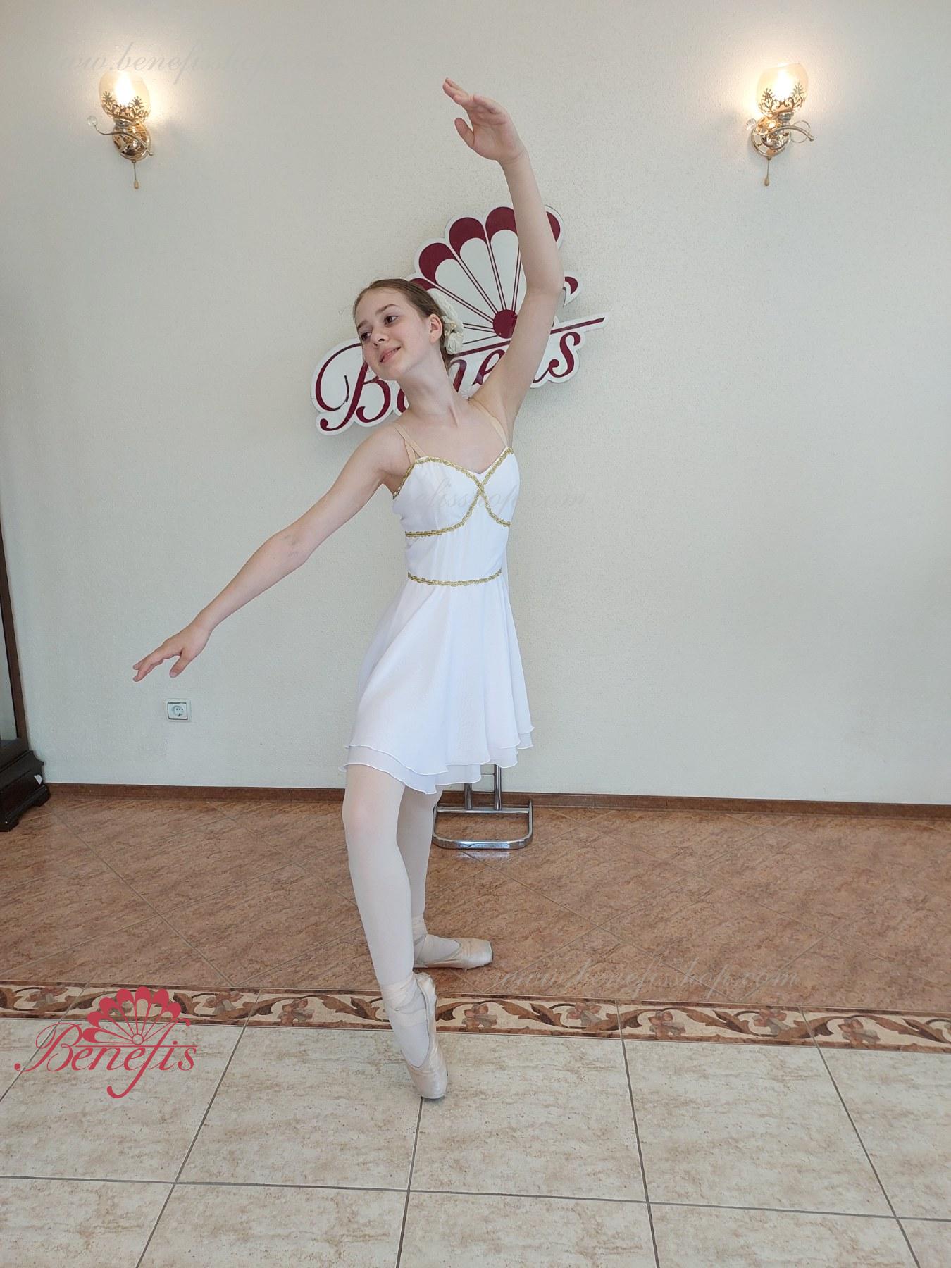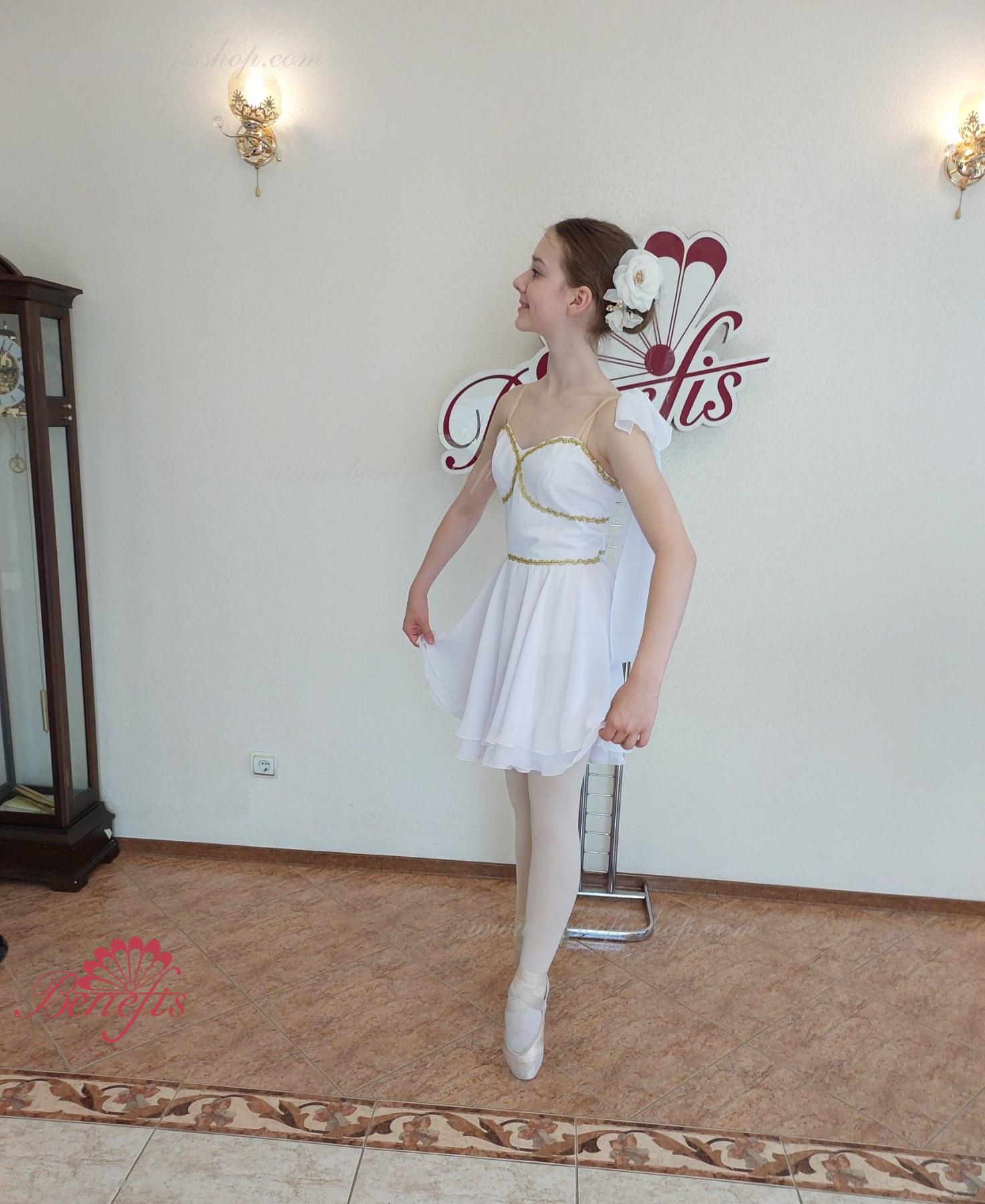 Нежное балетное платье изготовлено из лёгкого шифона и полуэластичной плотной ткани.