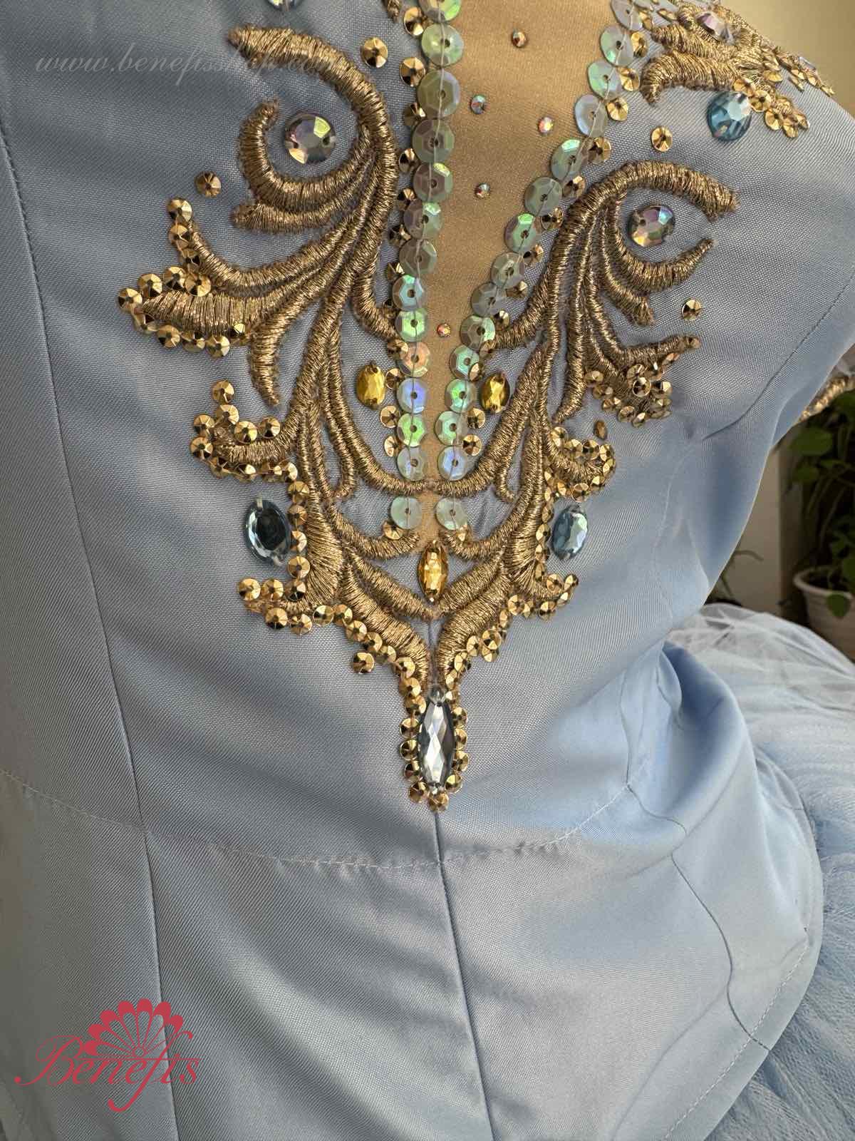 Пачка застегивается сзади на 4 крючка и петельки, которые пришиты в области талии. Декор: аппликации, блестки, стразы.