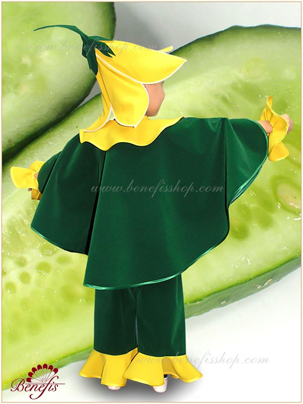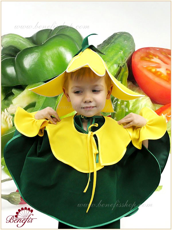 Костюм изготовлен из бархата. Украшением служат воротник и нарукавники, которые прилагаются к костюму отдельно. Пелерина и воротник завязываются спереди на завязки. Штанишки заканчиваются воланами, изготовленными в том же стиле, что воротник и нарукавники.