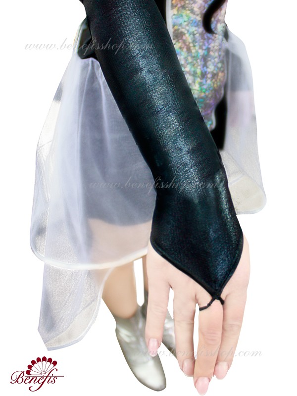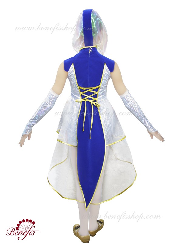 Платье выполнено из стрейчевого бифлекса с накладкой из бифлекса "хамелеон".Накладка окaнтована лентой. Хвост костюма выполнен из бархата и окaнтован лентой. Юбка выполнена из органзы и мягкого фатина.