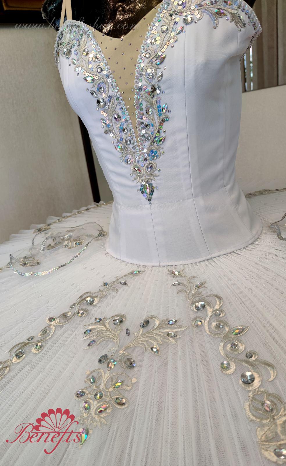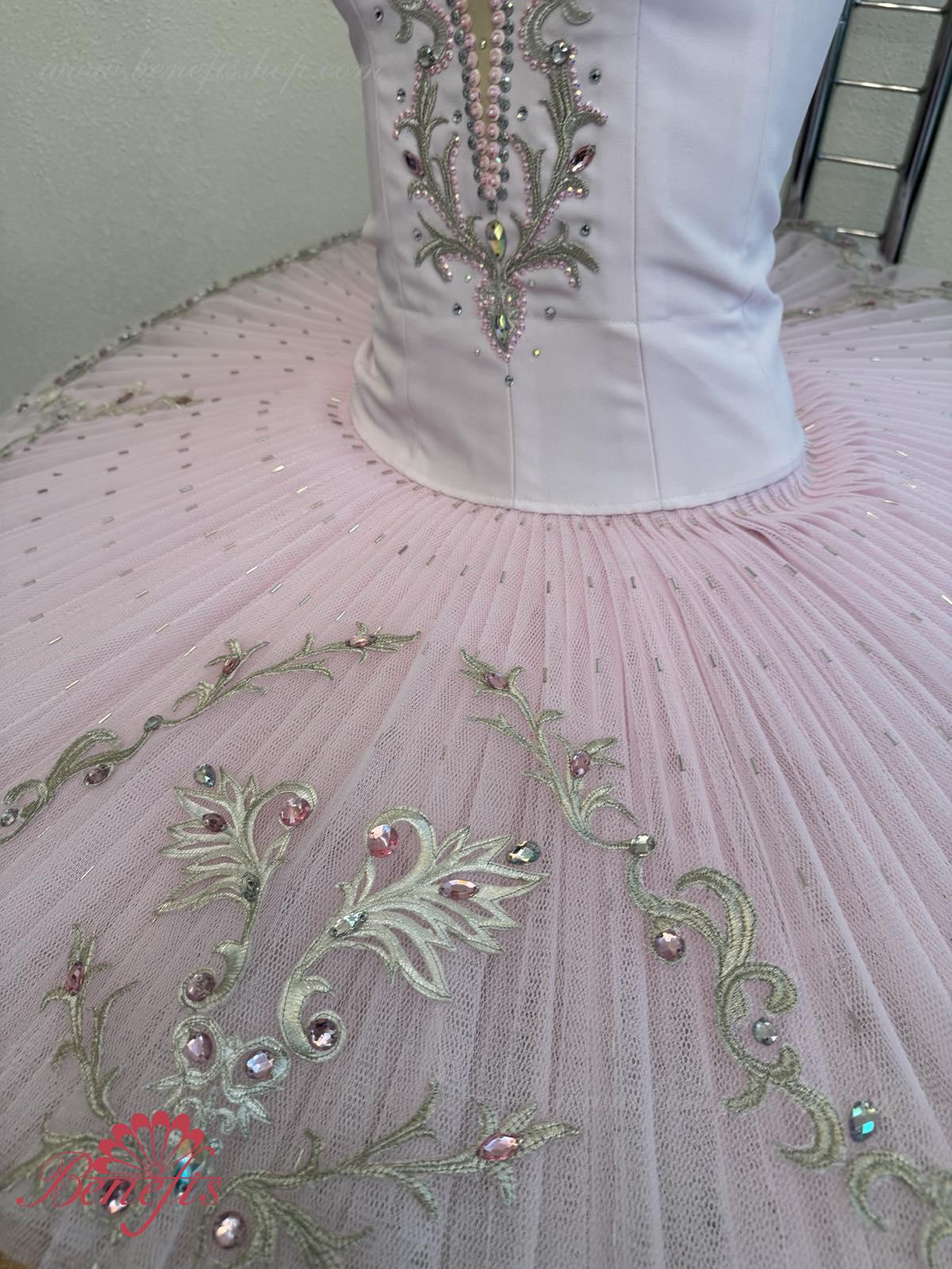 Костюм может быть использован в балетах «Баядерка», «Щелкунчик» - для роли Маша, «Спящая красавица» - для роли Аврора и как концертный костюм во многих балетных вариациях.