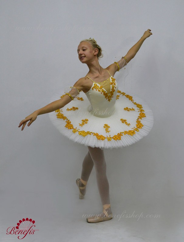 Концертный костюм выполнен на основе эластичного купальника с телесной вставкой и пачки на обручах.