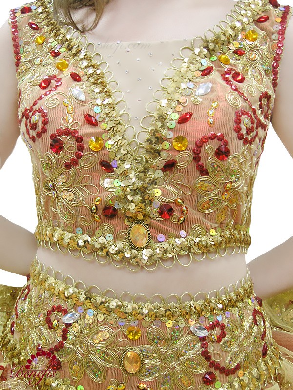 Изысканный восточный костюм, выполнен из двух частей – укороченного лифа и пачки одевающейся на бёдра.