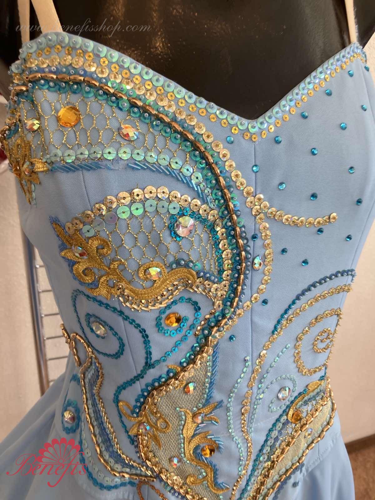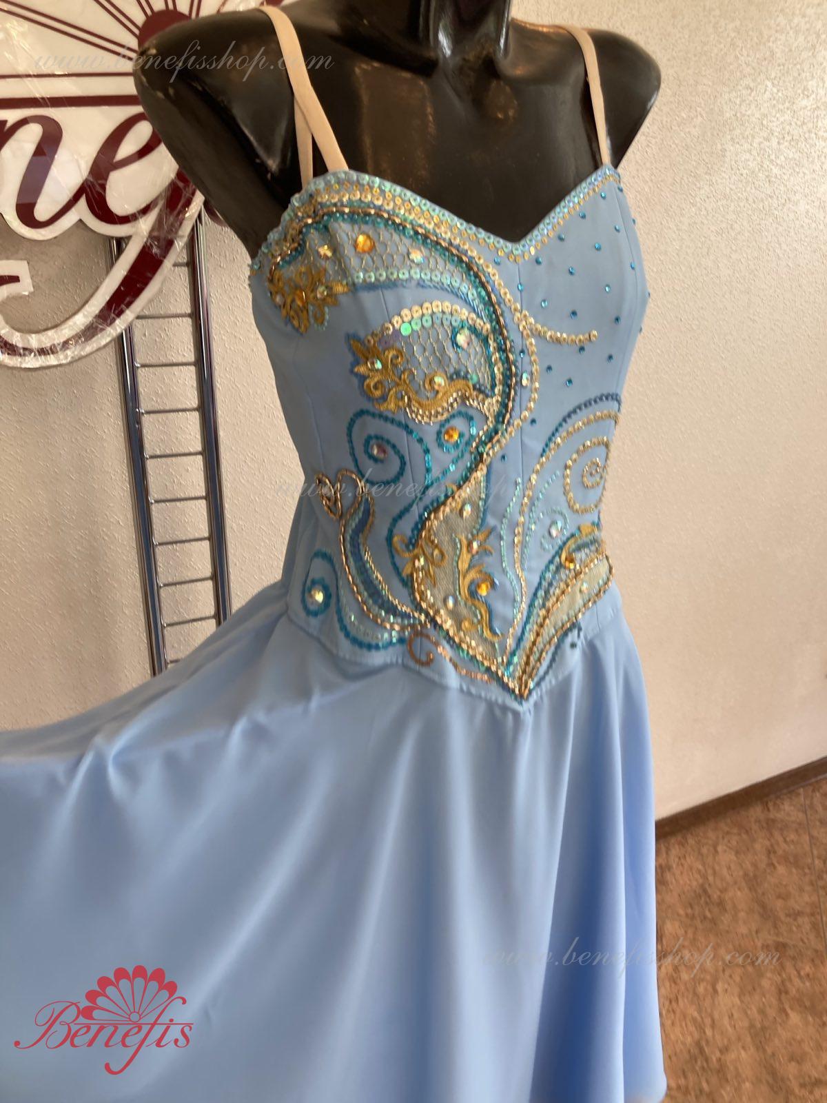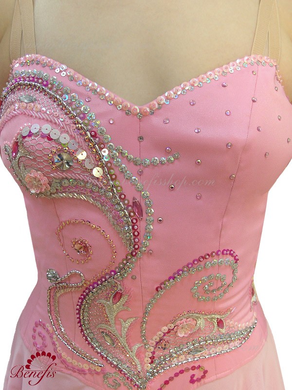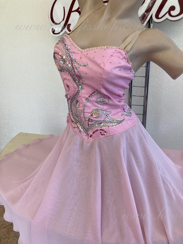 Костюм состоит из плотного лифа из полу стрейчевой ткани с пришитыми трусиками и юбкой из 2-х слоёв шифона. Юбка симметричной длины начинается на бёдрах.