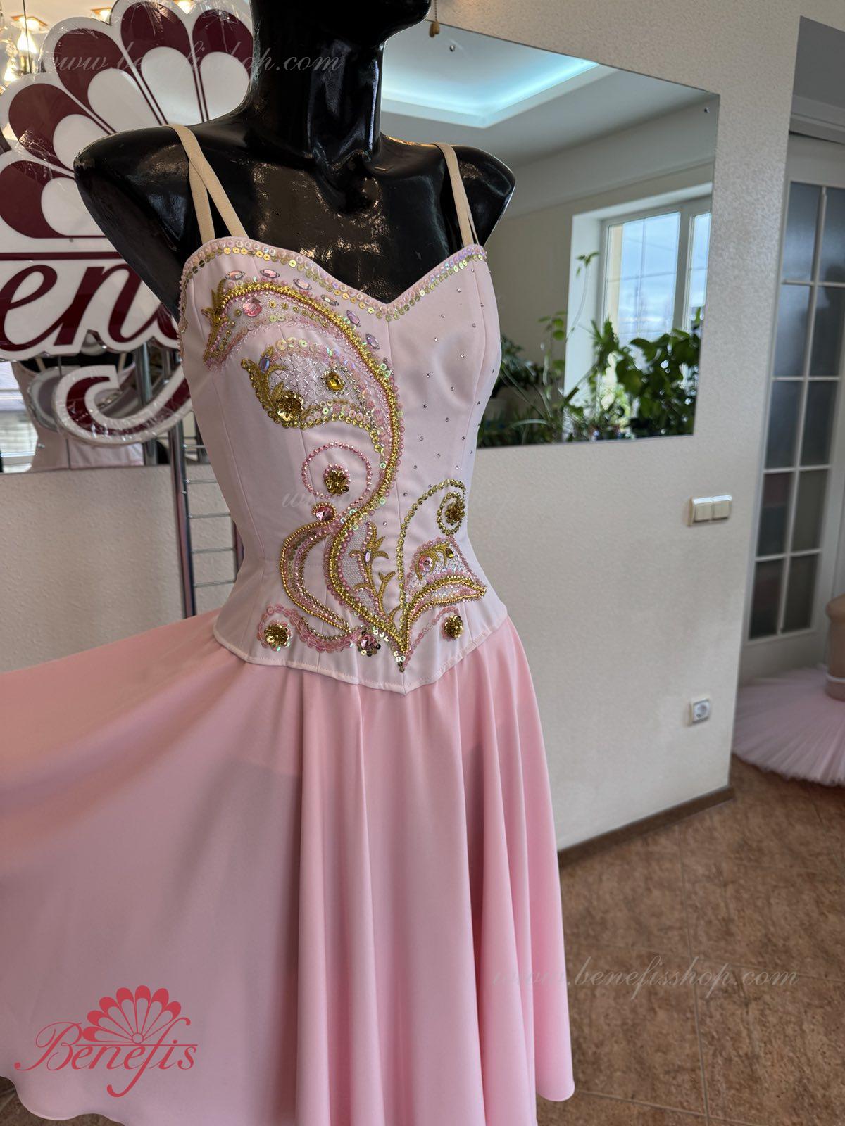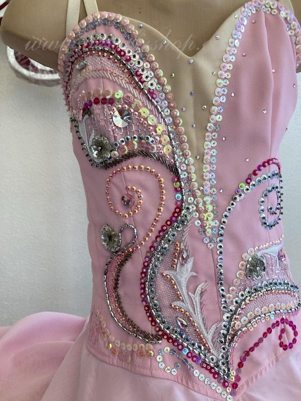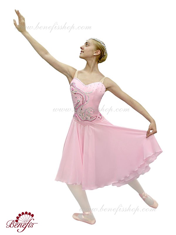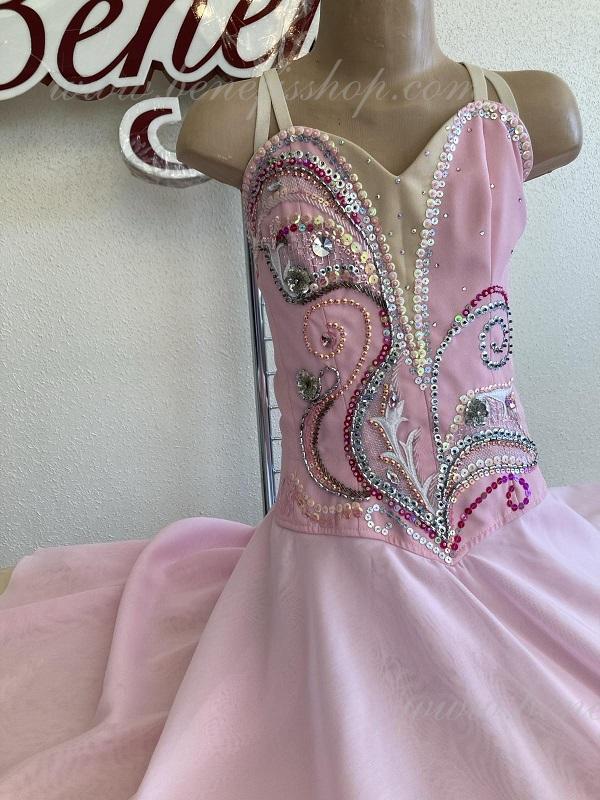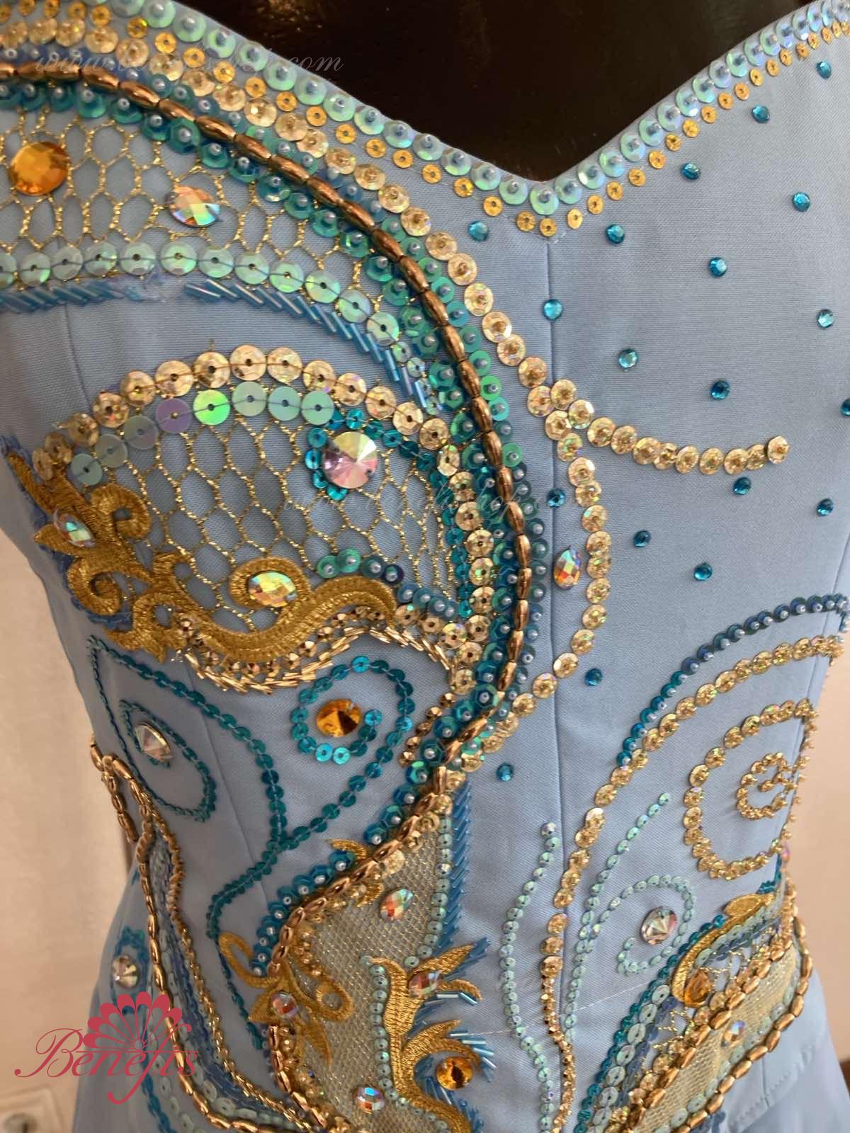 Костюм состоит из плотного лифа из полу стрейчевой ткани с пришитыми трусиками и юбкой из 2-х слоёв шифона. Юбка симметричной длины начинается на бёдрах.
