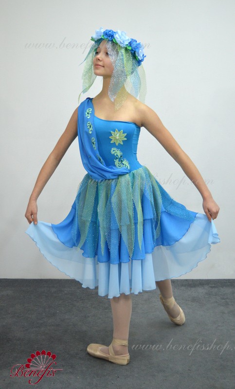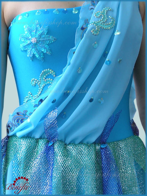 Декор лифа и юбки своим цветом и дизайном напоминает подводный мир.