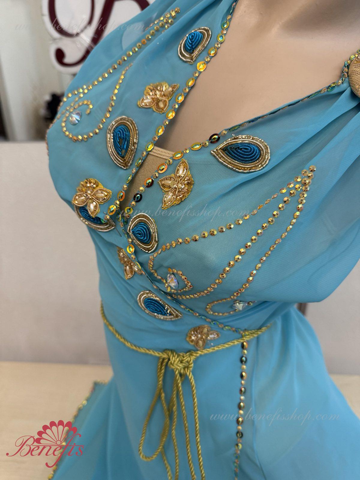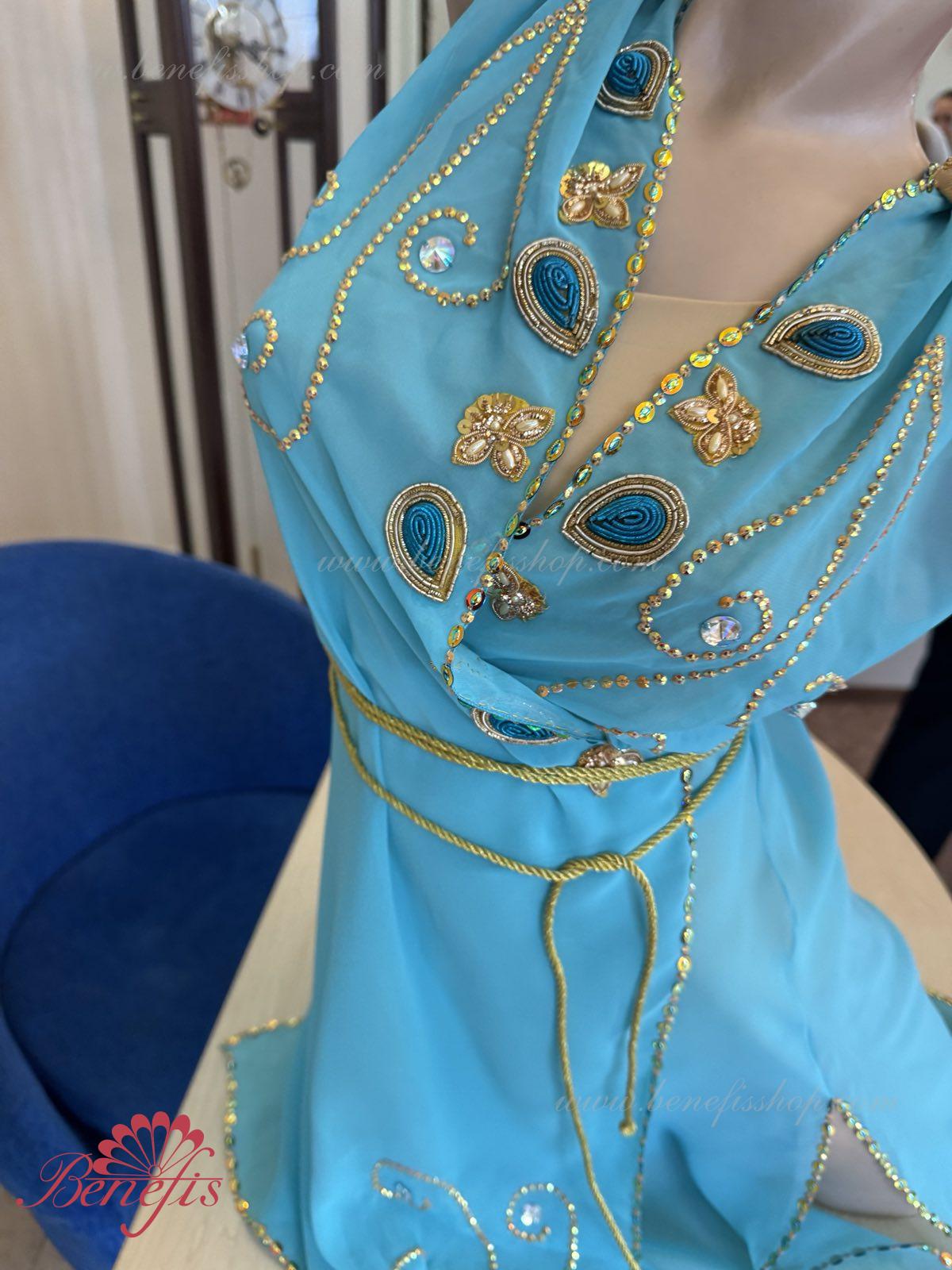 Это нежное \"летящее\" платье расшито аппликациями, стразами, блестками и бисером.